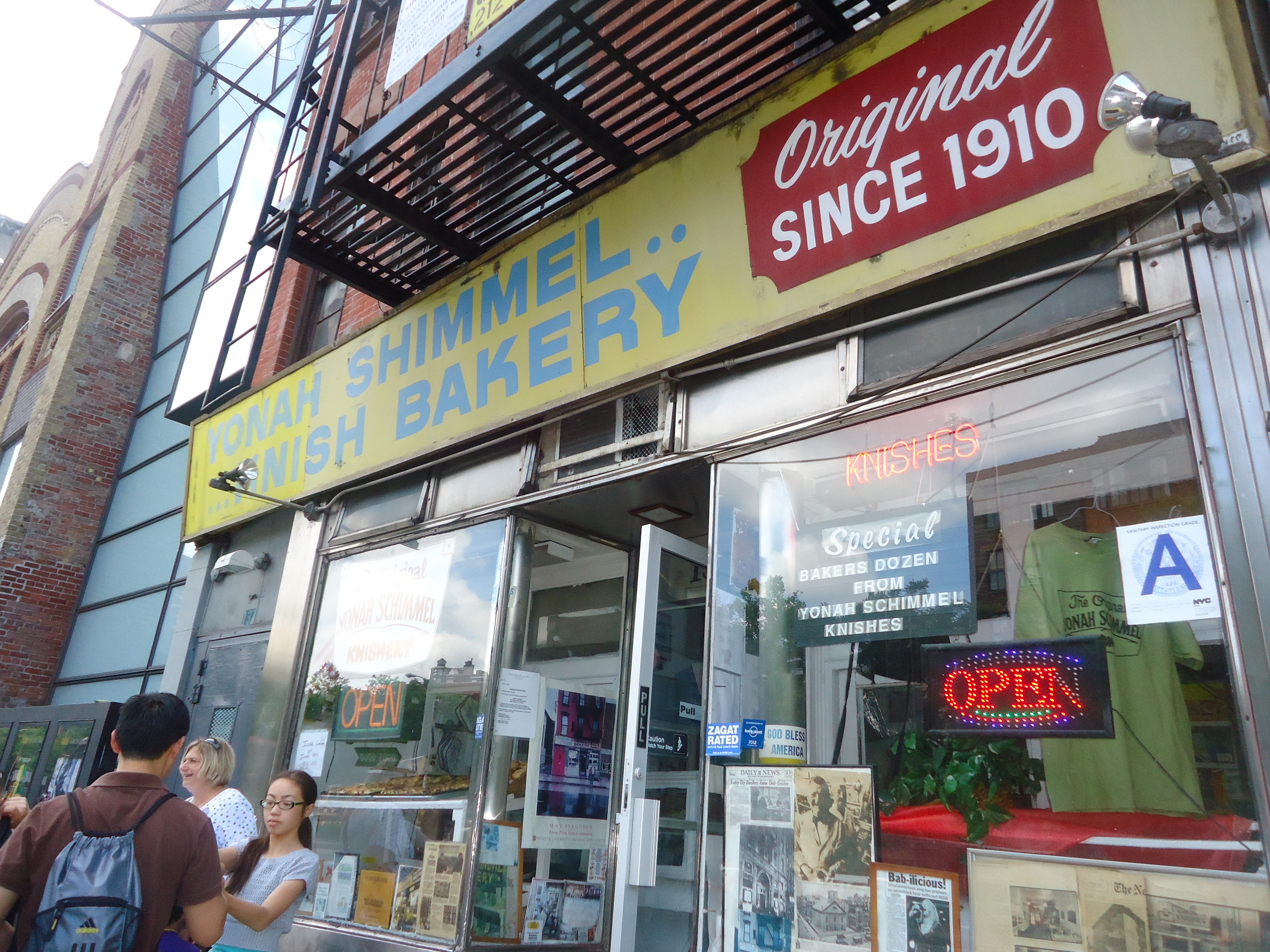 Our tour began outside Yonah Schimmel’s Knishes Bakery on 137 E. Houston St. Yonah’s is known for their knishes, which are traditionally made out of potatoes mixed with different fillings such as mushrooms, spinach and ground beef. You can also get a sweet knish. The only problem was their size. Don’t get me wrong, generally I think that the larger the portion the better, but since this was the first stop on our food tour, I did not want to get full. So I reviewed the fillings and the spinach one seemed interesting. I asked the person serving us if the knish came with cheese and he said no. I found this odd, since it was made out of potato. Incorporating cheese into the mixture only seemed logical to me. He did offer to put cheese on top of the knish for an extra $1.50, but it would not have been the same. I wanted the cheese to be in the dough and melted. On the upside, the sweet knishes come with cheese. Huh?! But not the savory one’s? Such a missed opportunity. But who am I to judge? They have in fact been very successful since 1910.