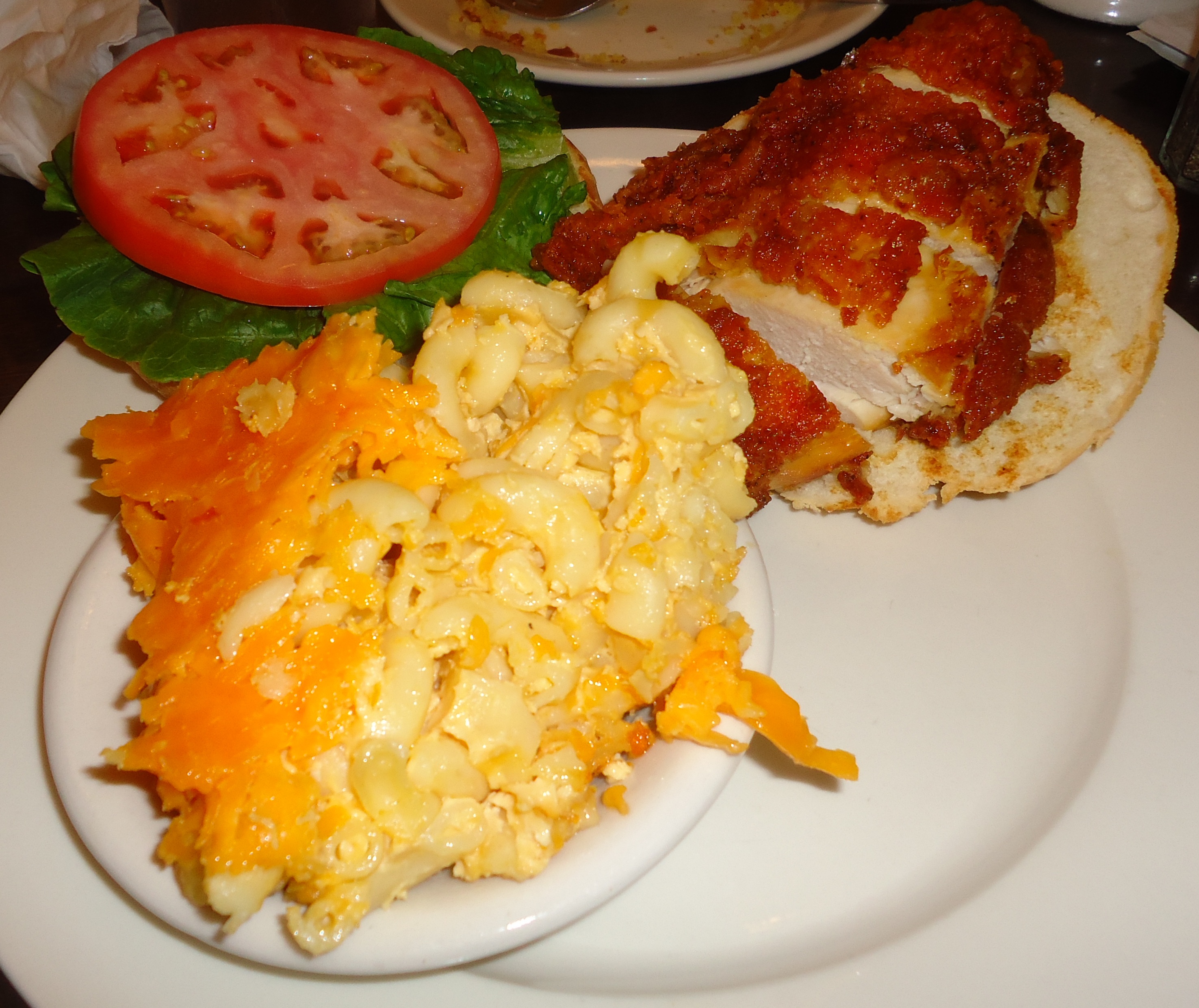 The macaroni and cheese did not look appealing to me because it seemed cold. Boy are looks deceiving! It tasted amazing. Sure the cheese was crispy in some parts, but overall it was warm, creamy, but not to the point of being too heavy. In fact, I found the crispy parts of the cheddar cheese to be a great contrast to the creamy parts. Divine!