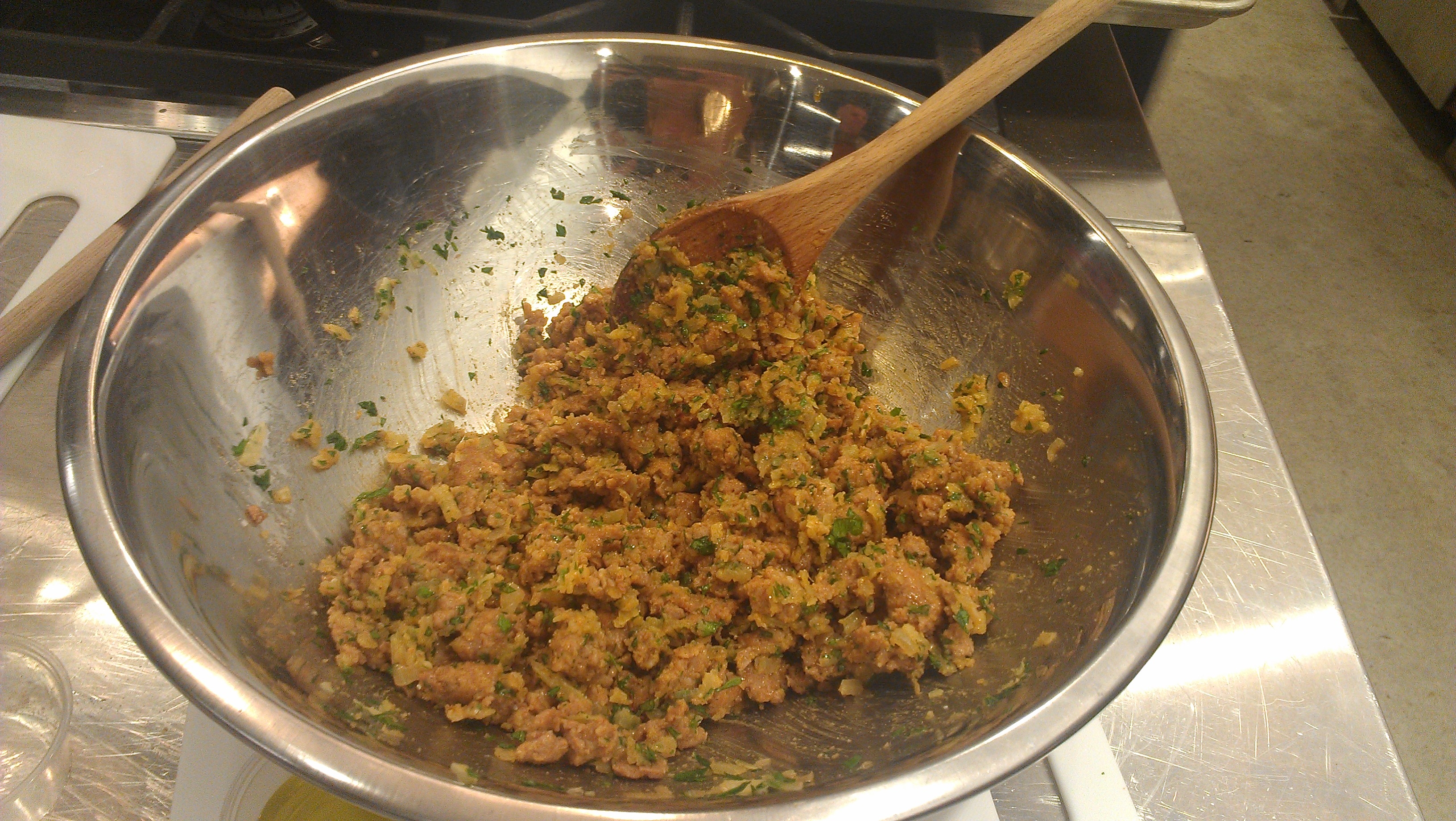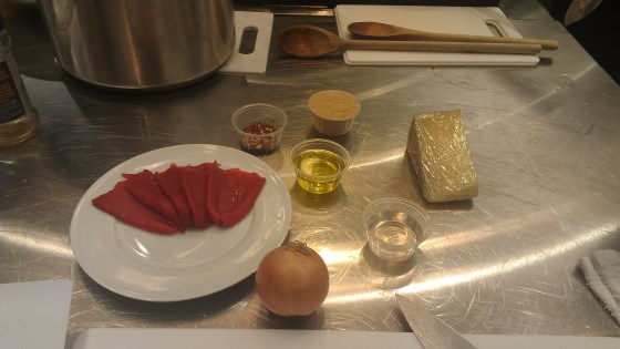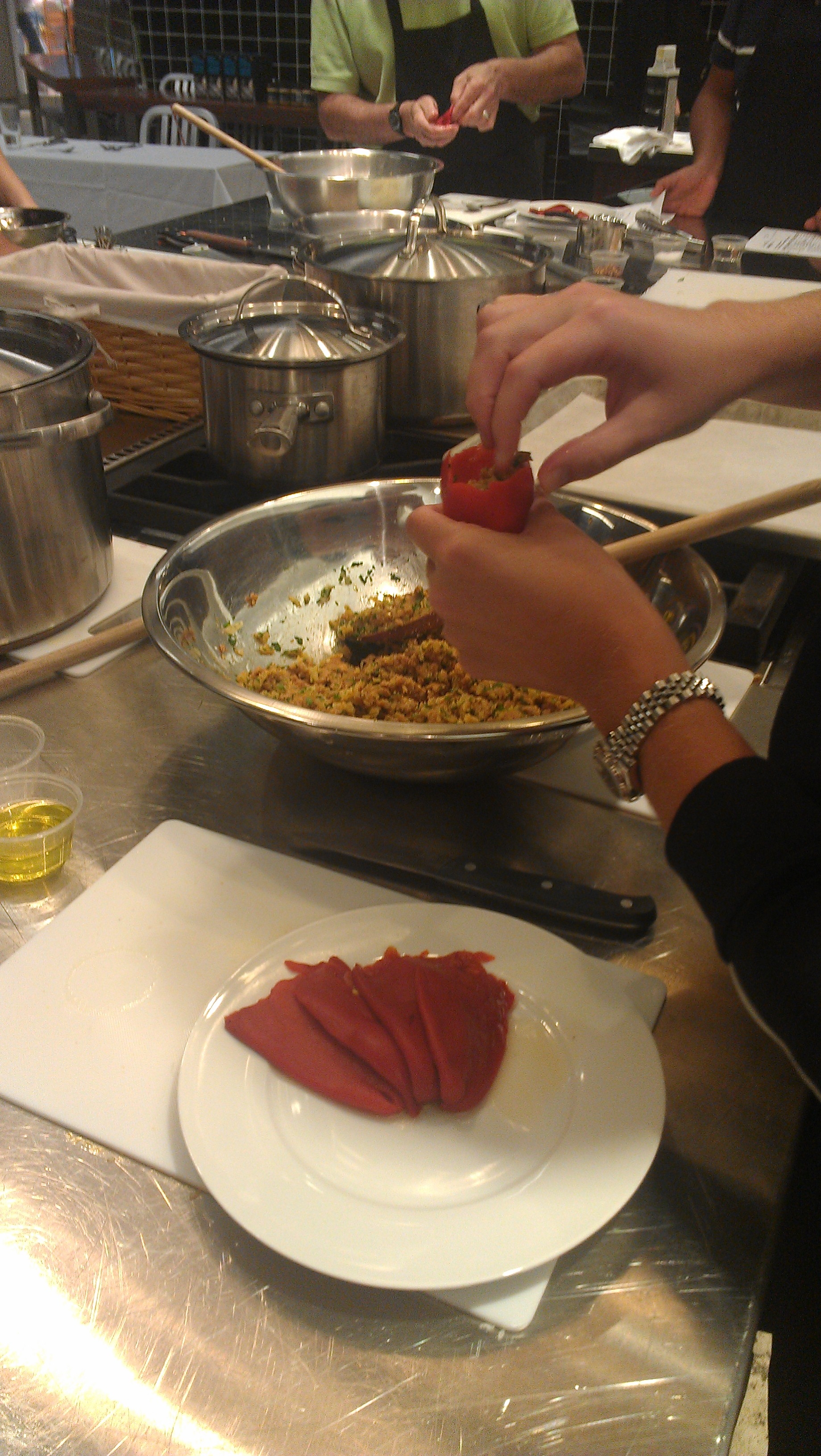 The chorizo stuffing for the peppers. One of the class members could not eat pork, so she stuffed hers with cheese. So good!