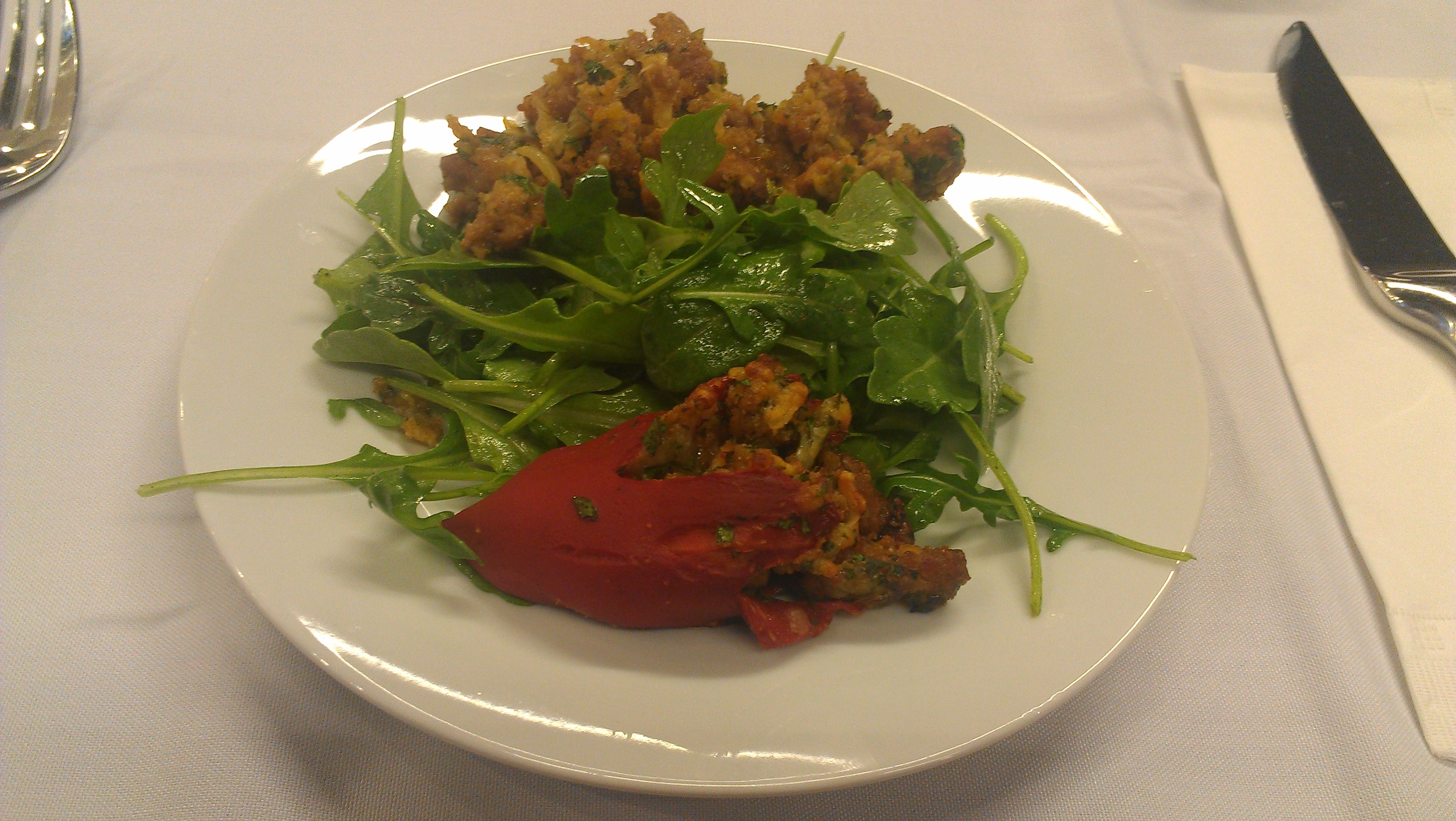 Course #1: Israeli couscous salad and spicy chorizo & manchego cheese stuffed piquillo peppers.