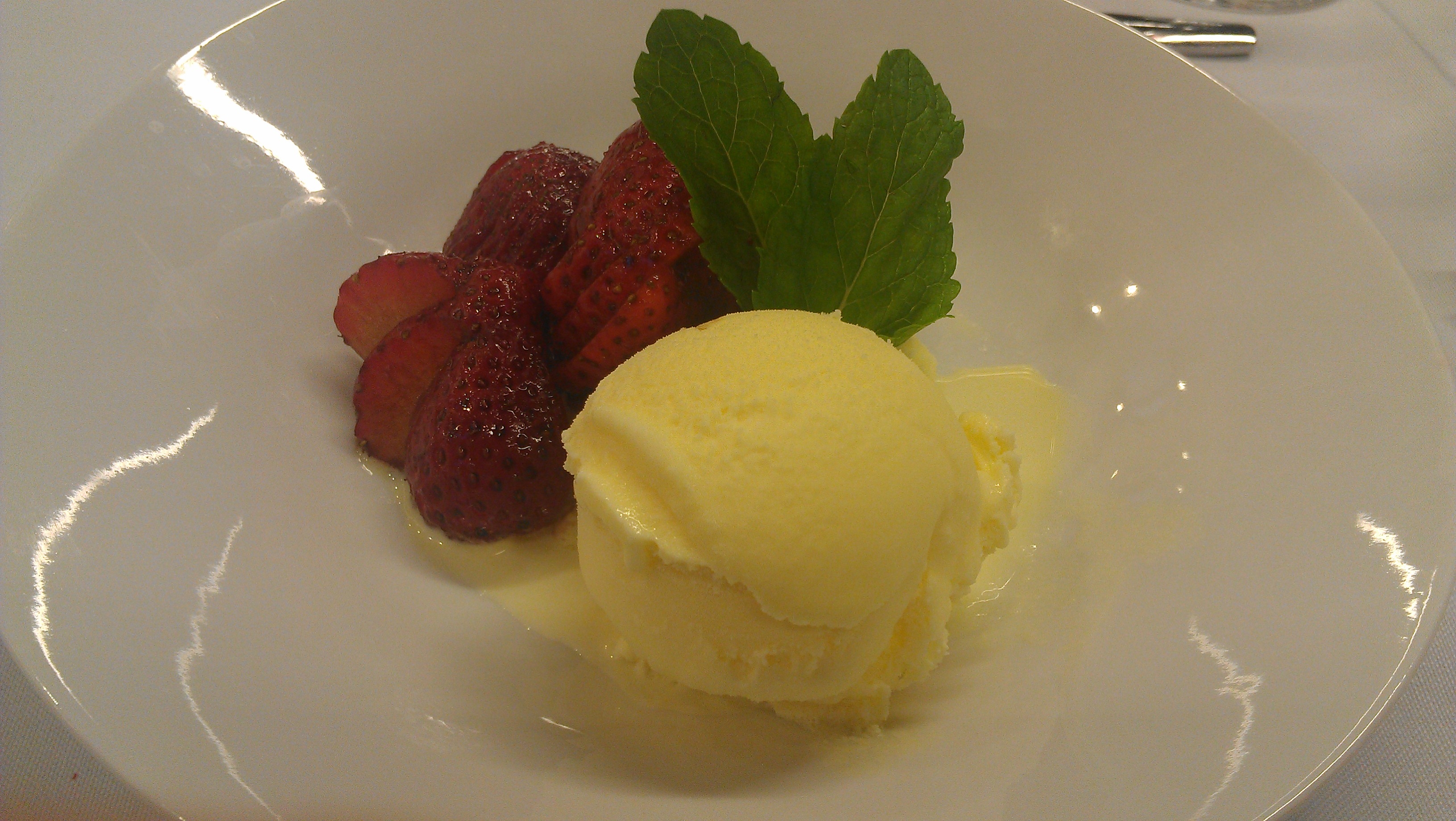 Course #3: For dessert we had vanilla ice cream with aged balsamic and strawberries.
