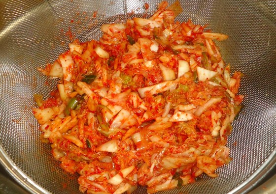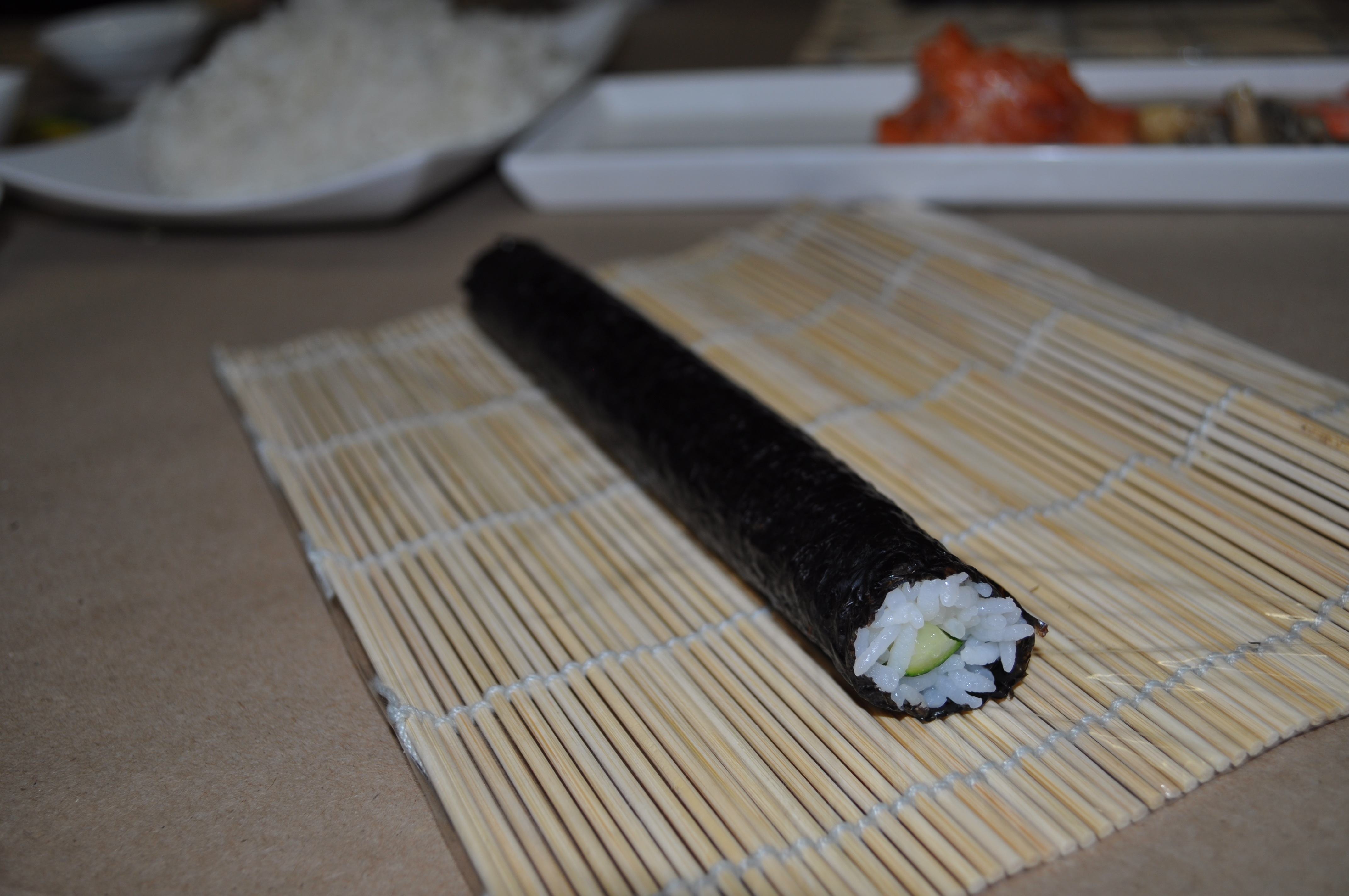 Is a “large, fat roll” with nori on the outside (similar to the hosomaki but with more filling). This was the last roll we made and we received the addition of a stir fry that consisted of ground beef and kimchi which was a recipe passed down to Sang. It was delicious. Sang also offered the class more of the other ingredients that we had used for the other rolls, such as salmon, cucumber and mushrooms.
