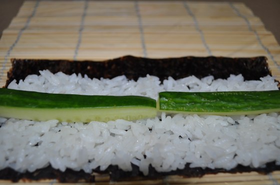 Also known as the “thin rolls”, these rolls have nori (seaweed) on the outside. These rolls generally contain only one filling; in this case we used cucumber.