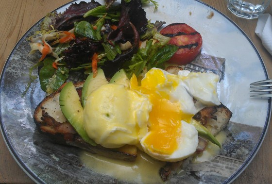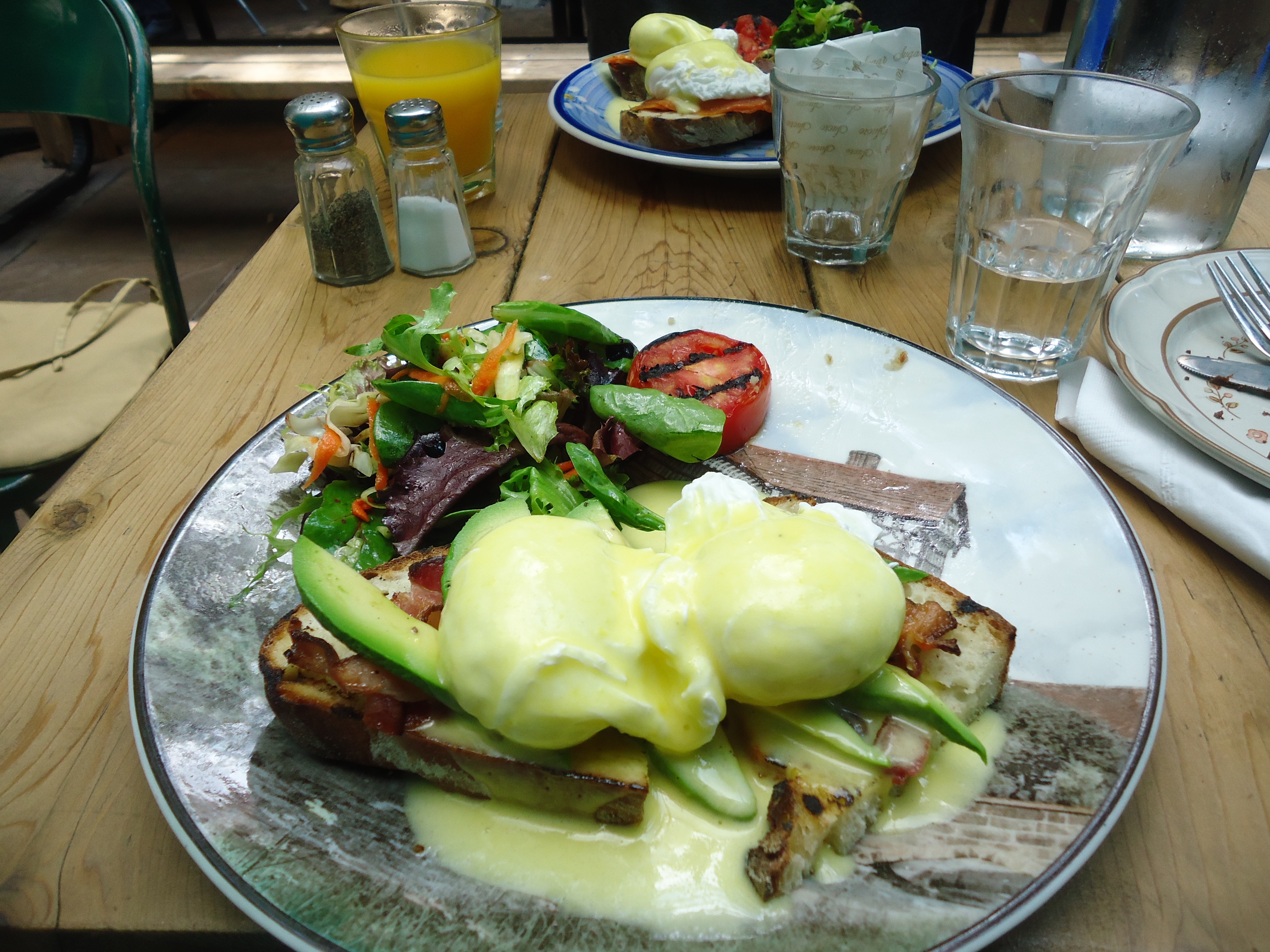 After the muffin disappointment, I looked through their menu and specials and decided to go with their eggs Benedict with avocado and bacon from their specials. But see, I learned my lesson from my last experience and asked them to omit the potatoes and to give me extra salad instead.