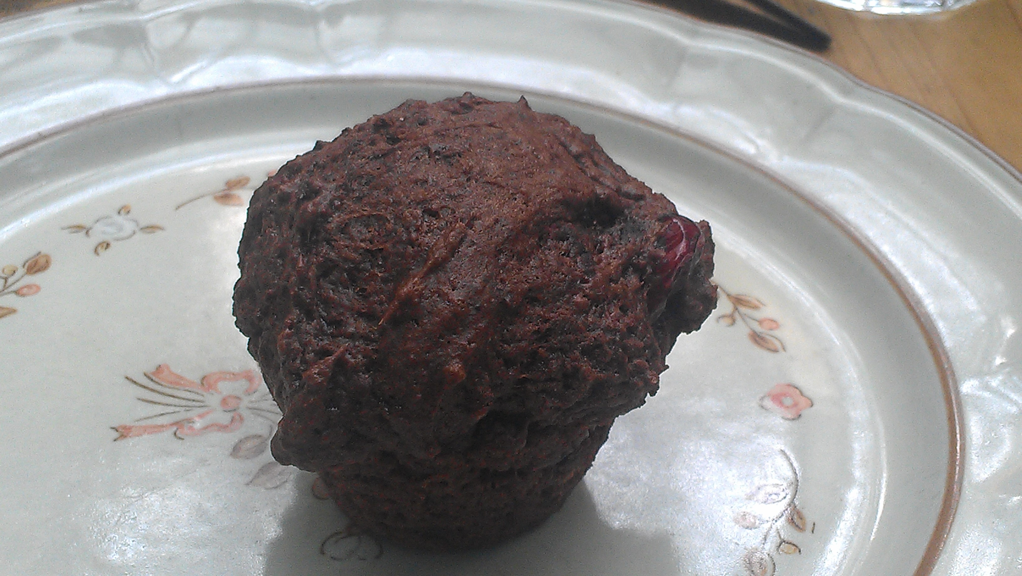 When the waitress walked over to us I asked her about the donuts. “We do not have donuts today, but we do have choco-cranberry mini muffins, and they are very popular.” “Okay I will try one” I told her, though I told my friend after she left, “I hate muffins!” Shortly after she came back with this “muffin.” Does this look appealing to you? Well let me tell you, it tasted just as bad as it looks. I had one bite and then put it aside. Not even my friend wanted to try it.