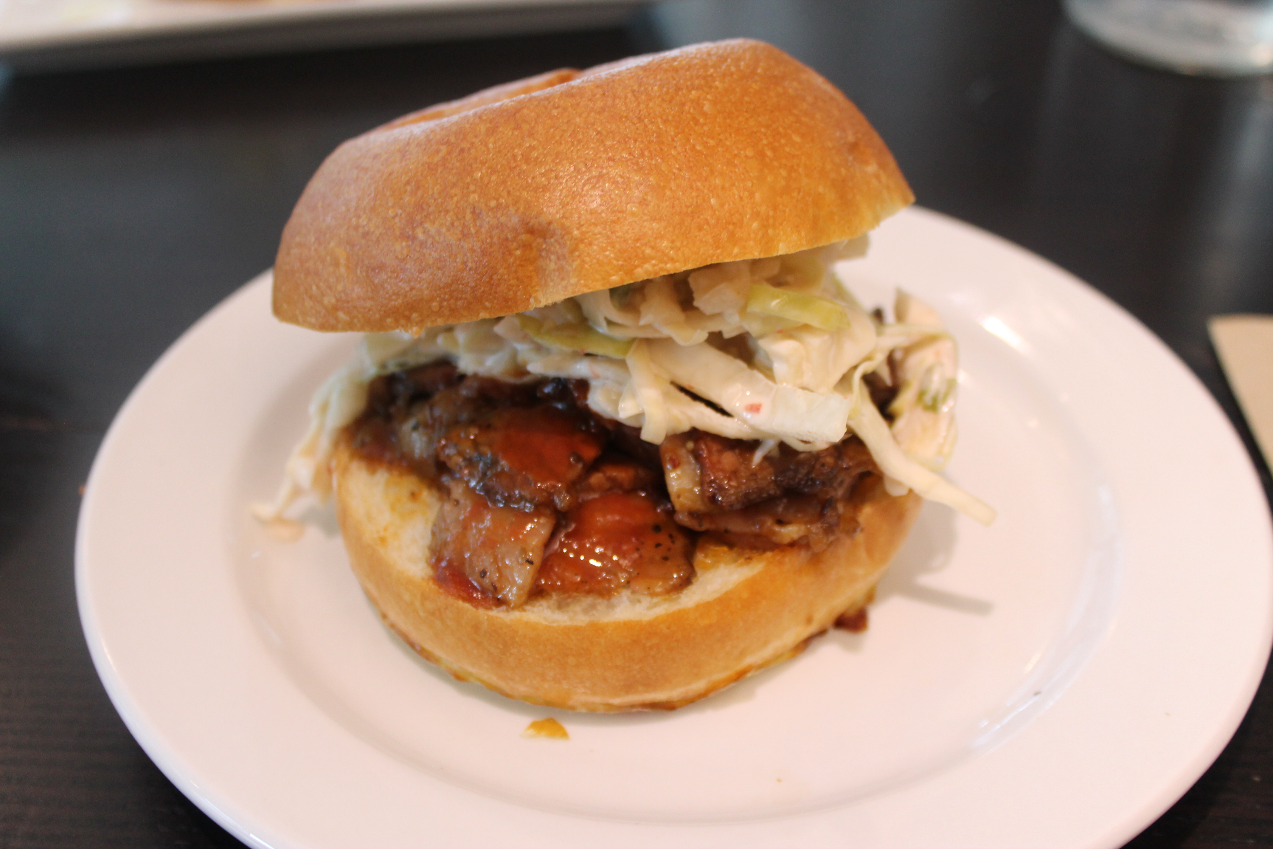 Here is the thing. When it comes to BBQ, the sauce has to be just right. Not too sweet, not too tangy, not too smoky, not too “chipotle” tasting. I know, it seems like I am asking for too much, but you need the right balance of flavors. So not only does the meat have to be tender and melt in your mouth, but the sauce needs to adhere to the same high standards. So, what did I think of this sauce? All I tasted was chipotle. It was not bad, but I was not blown away. The coleslaw was okay, but I would have liked it a bit more tangy rather than creamy. A tangy coleslaw could have cut through the overpowering chipotle taste. Another negative was the ratio of meat to fat. It was just about 50/50. I know many people who love fat in their beef brisket. I don’t. It was not a bad burger by all means, but compared to the first 2 dishes I had, this one was my least favorite.
