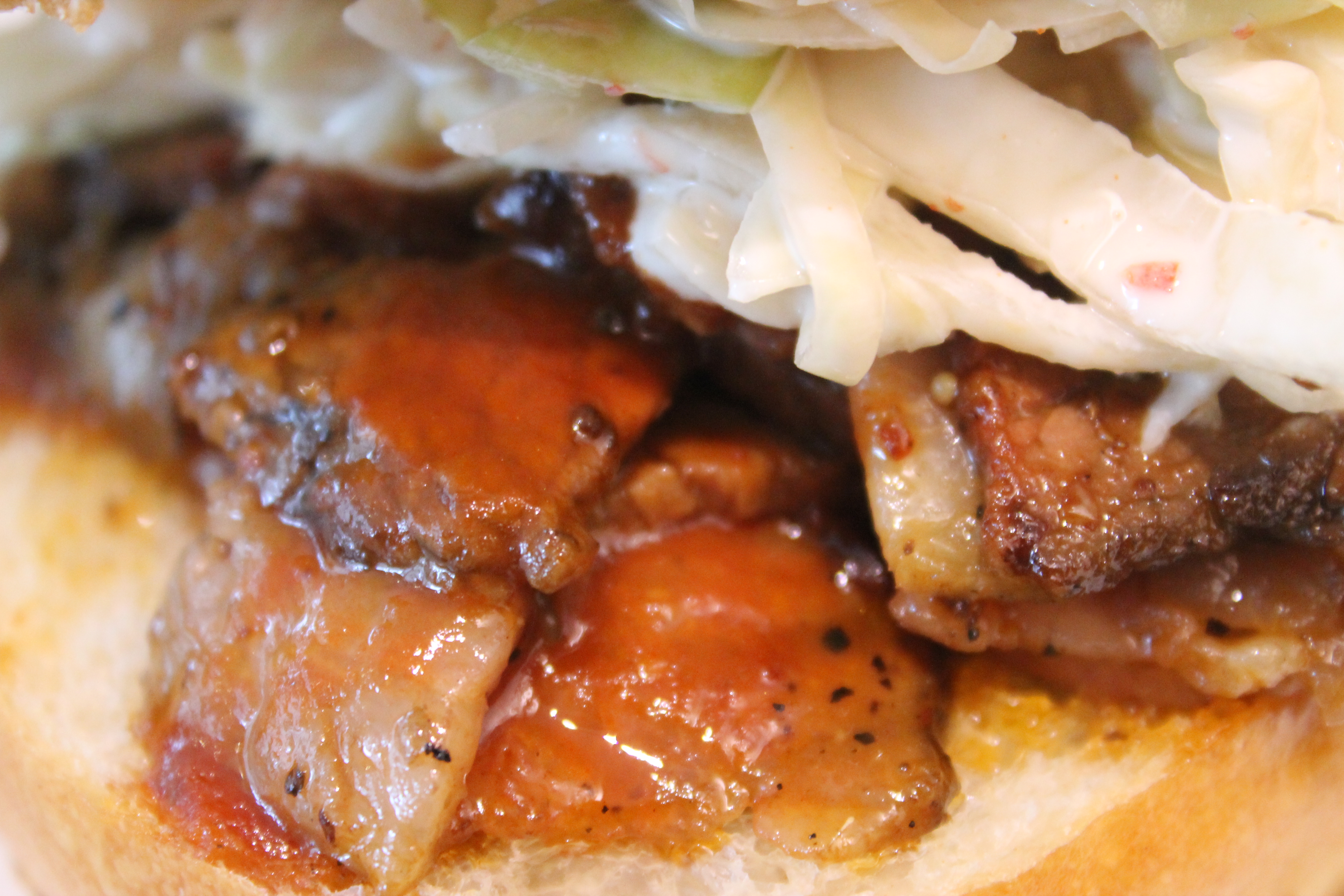 3) BBQ beef brisket, house-smoked, hot sauce and a jalapeño-ginger coleslaw. $7.00