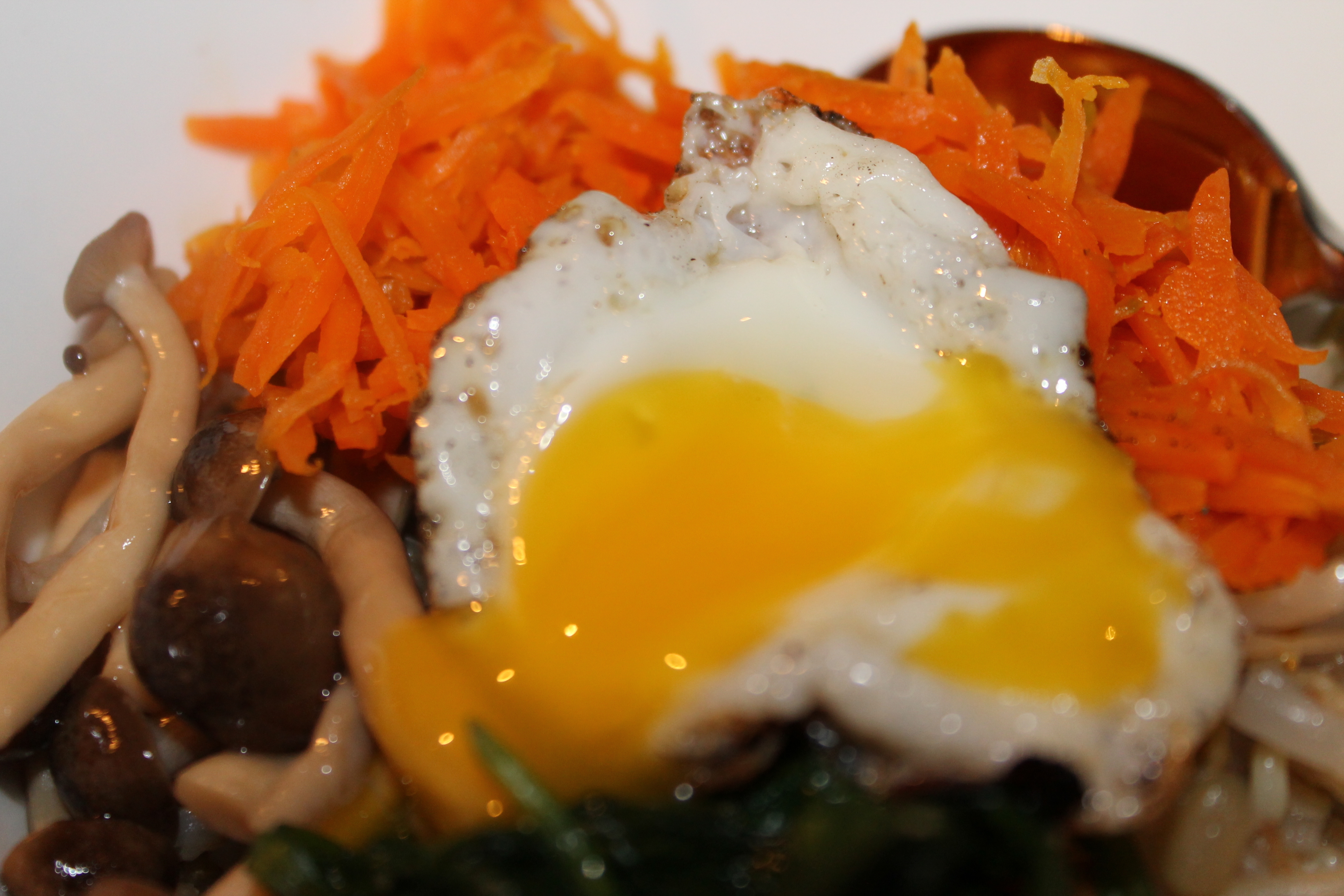 Emma and I were the first to arrive and were seated with another party. Several minutes after seating down Sang came out with 2 plates of baby bibimbap made with brown rice, 4 daily vegetables and a quail egg. The regular price for this dish is $5.25, but Sang gave this to us on the house. Yes!