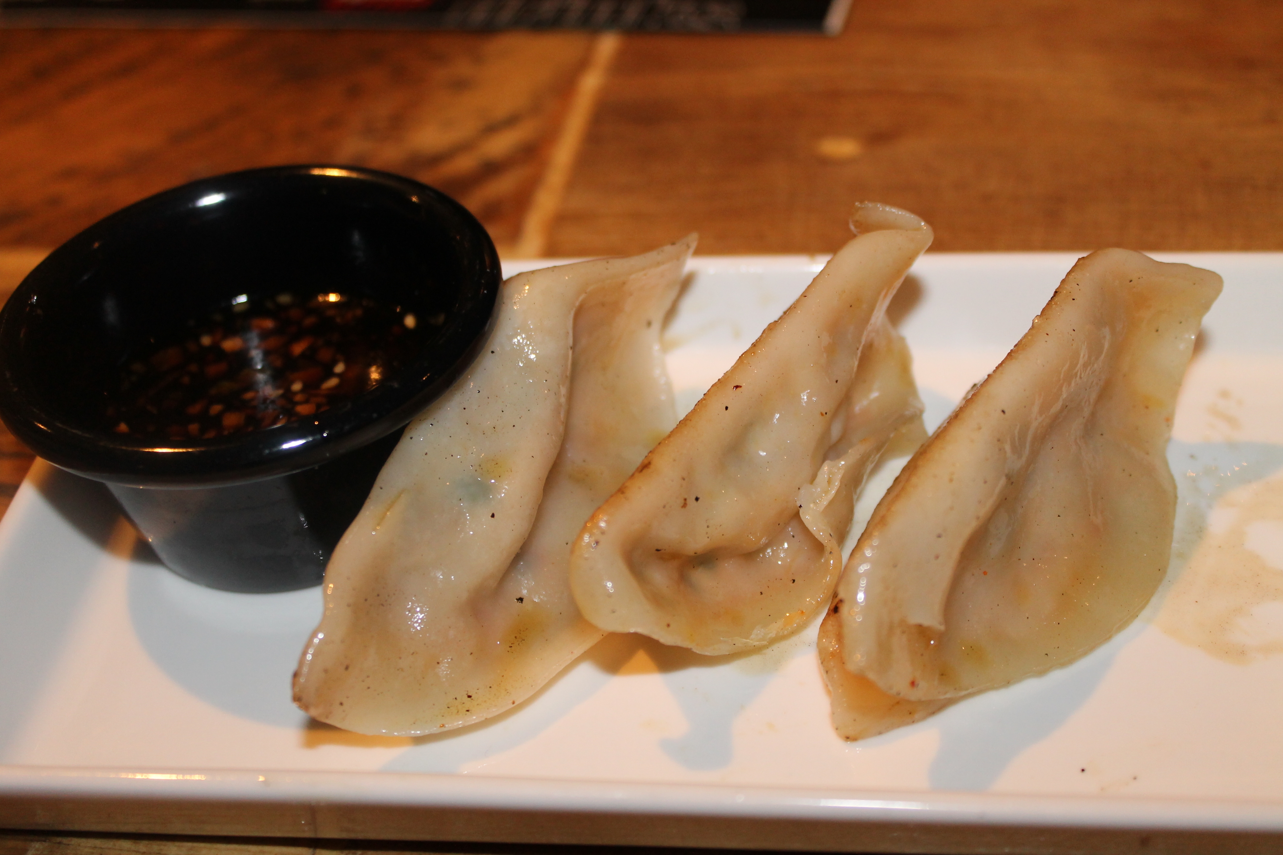 Chris’s 1st dish was the kimchi 3 ways: 1) seared dumplings; 2) takoyaki balls & 3) tofu tower for $4.95. Out of the 3 his favorite were the takoyaki balls because they were the most flavorful. He was not a big fan of the tofu, but I do think that tofu is an acquired taste. I personally like it…when deep fried. Are you noticing a pattern?