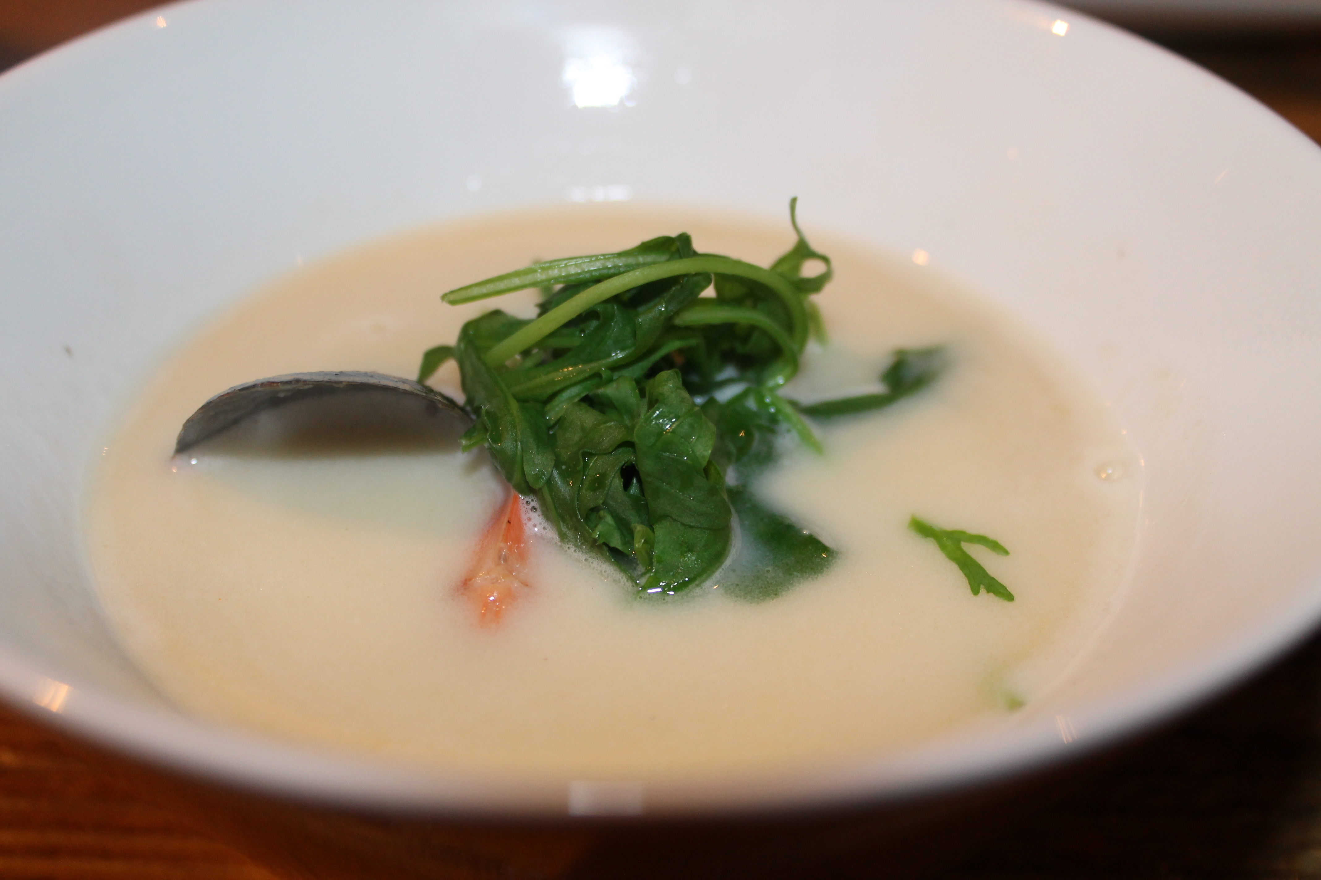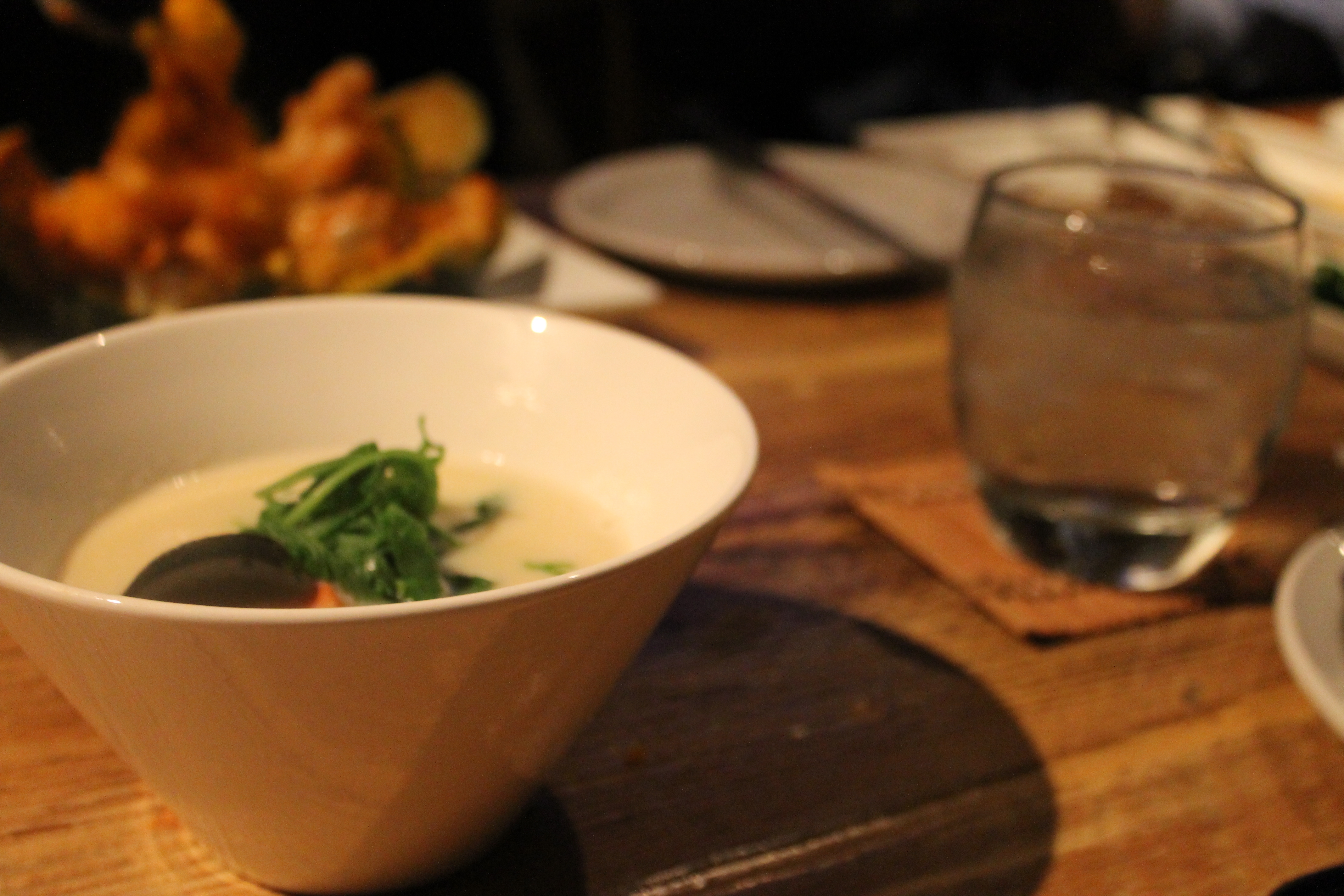 The 1st dish Regina ordered was the seafood miso chowder made with creamy white miso for $4.95. This soup came highly recommended by Sang and so naturally Regina and I had to try it. Regina liked it, I however was on the fence because when I hear chowder, I immediately think of chunky pieces of potato and lots of seafood. This soup was creamy and thin, and I prefer my chowder thick and chunky.