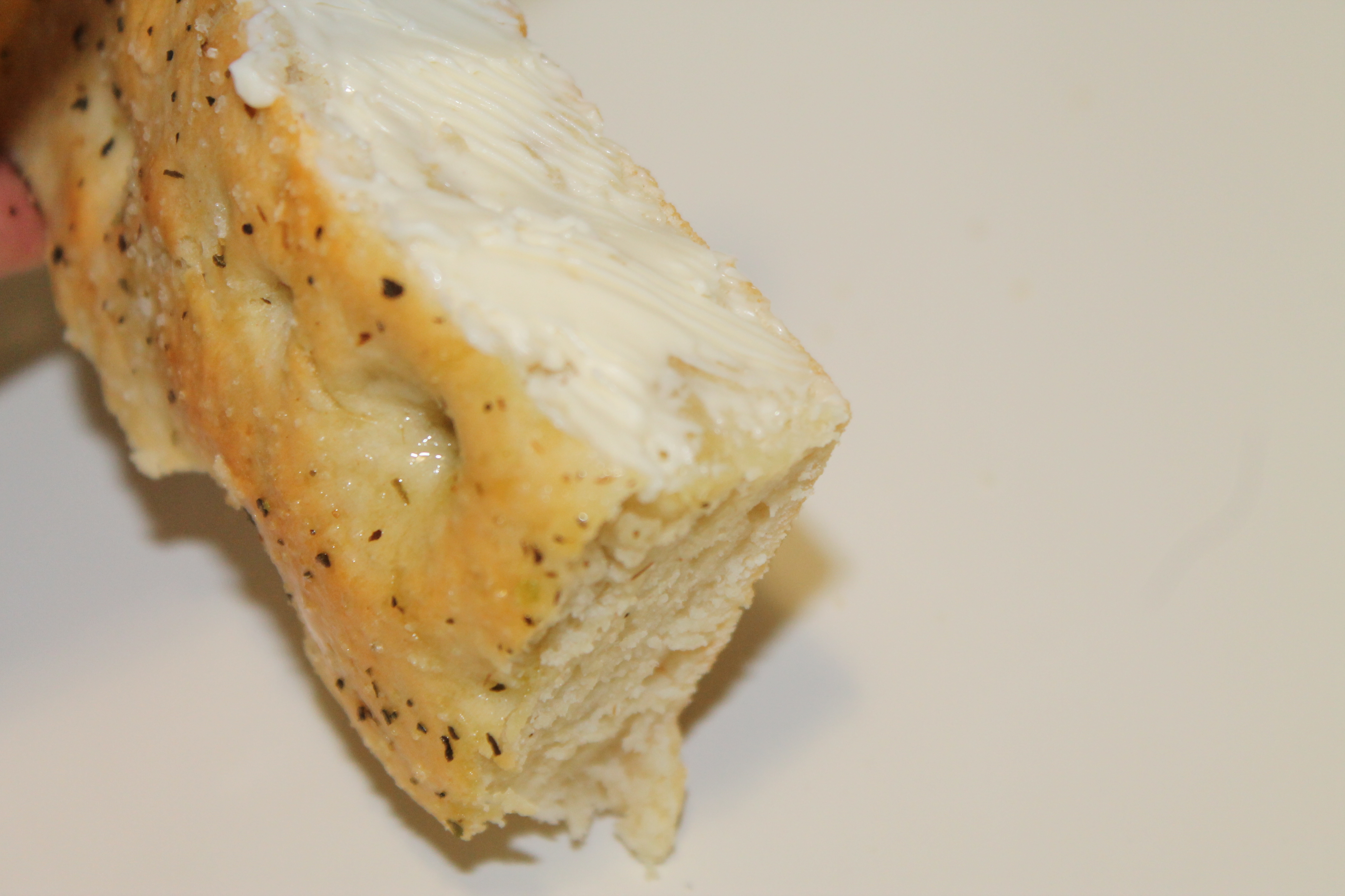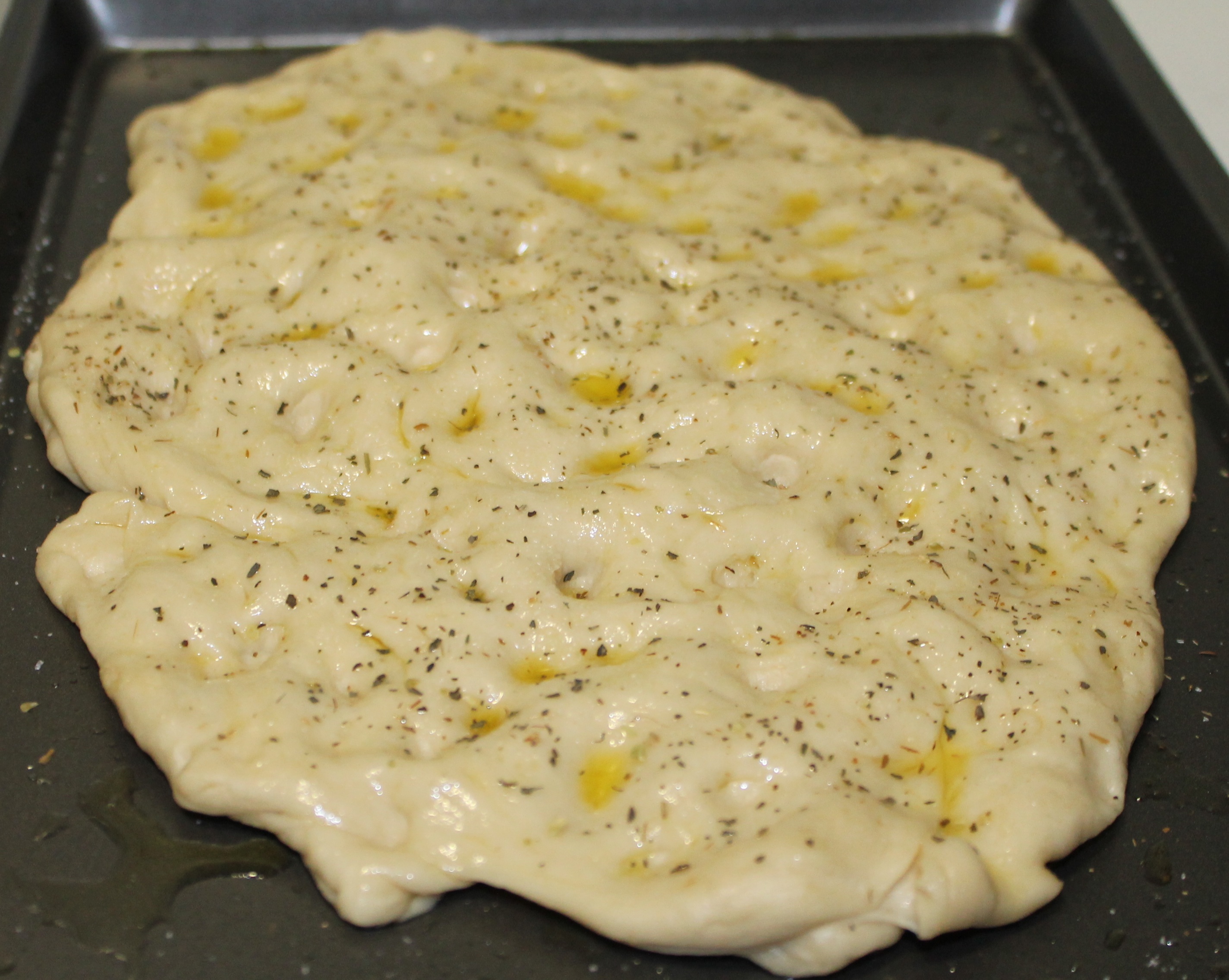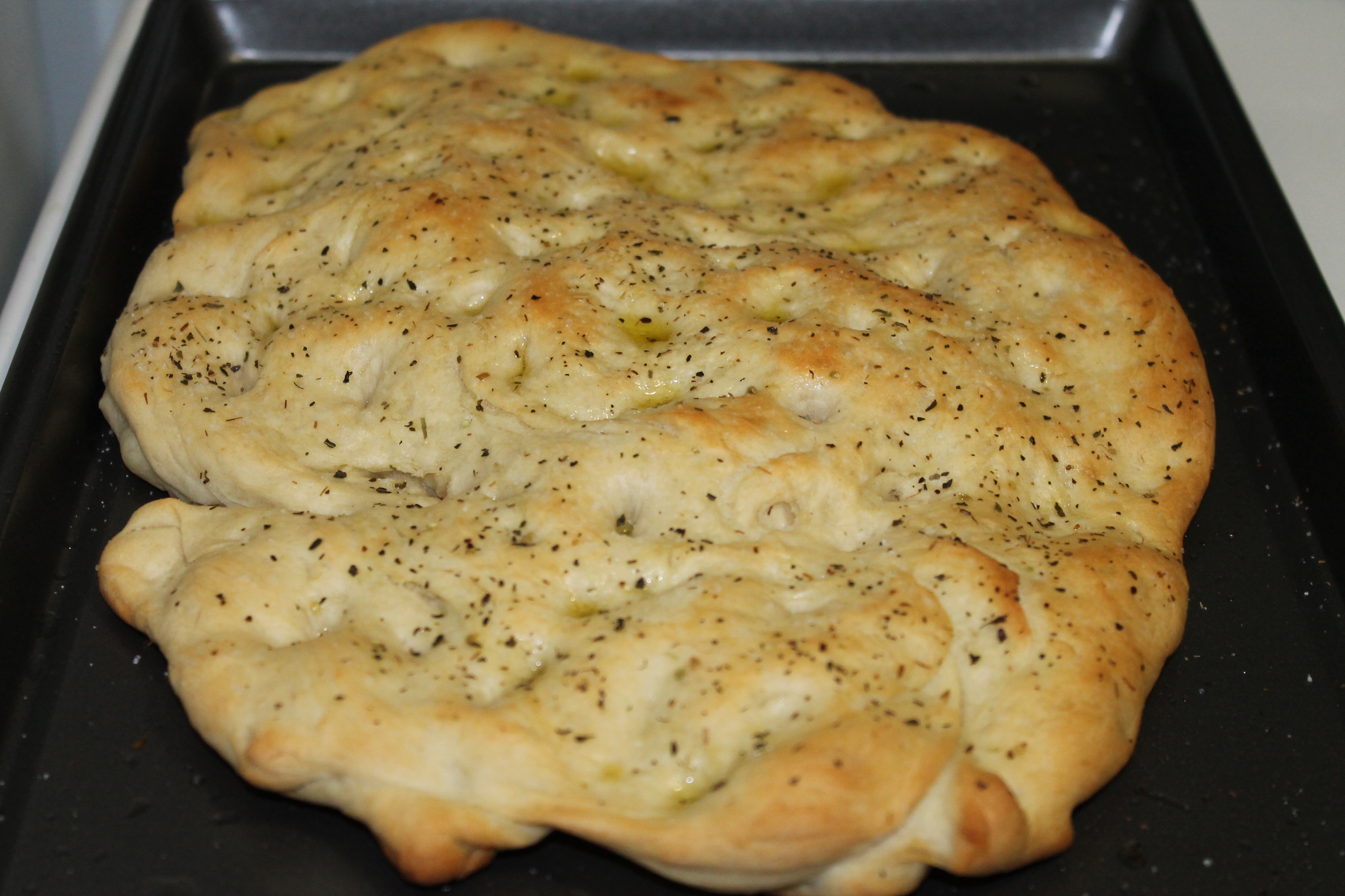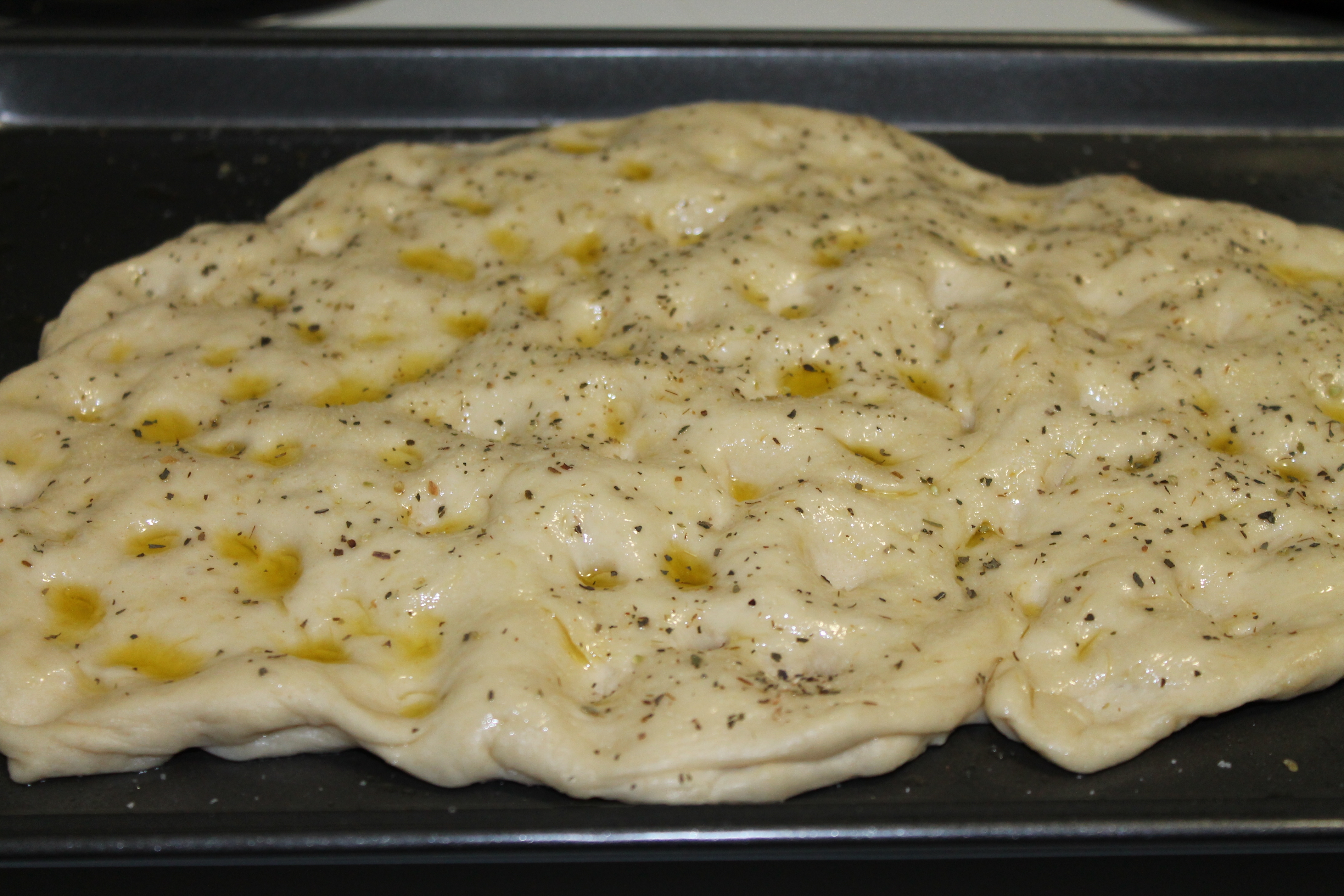 After Googling “easy + quick + bread + recipes” I decided to make focaccia bread. I would provide you with the recipe I used, but the fact is, I messed up. When the recipe asked for tsp I accidentally used tbsp, so I had to improvise. Meaning, I added a little bit more flour here and water there….without measuring.