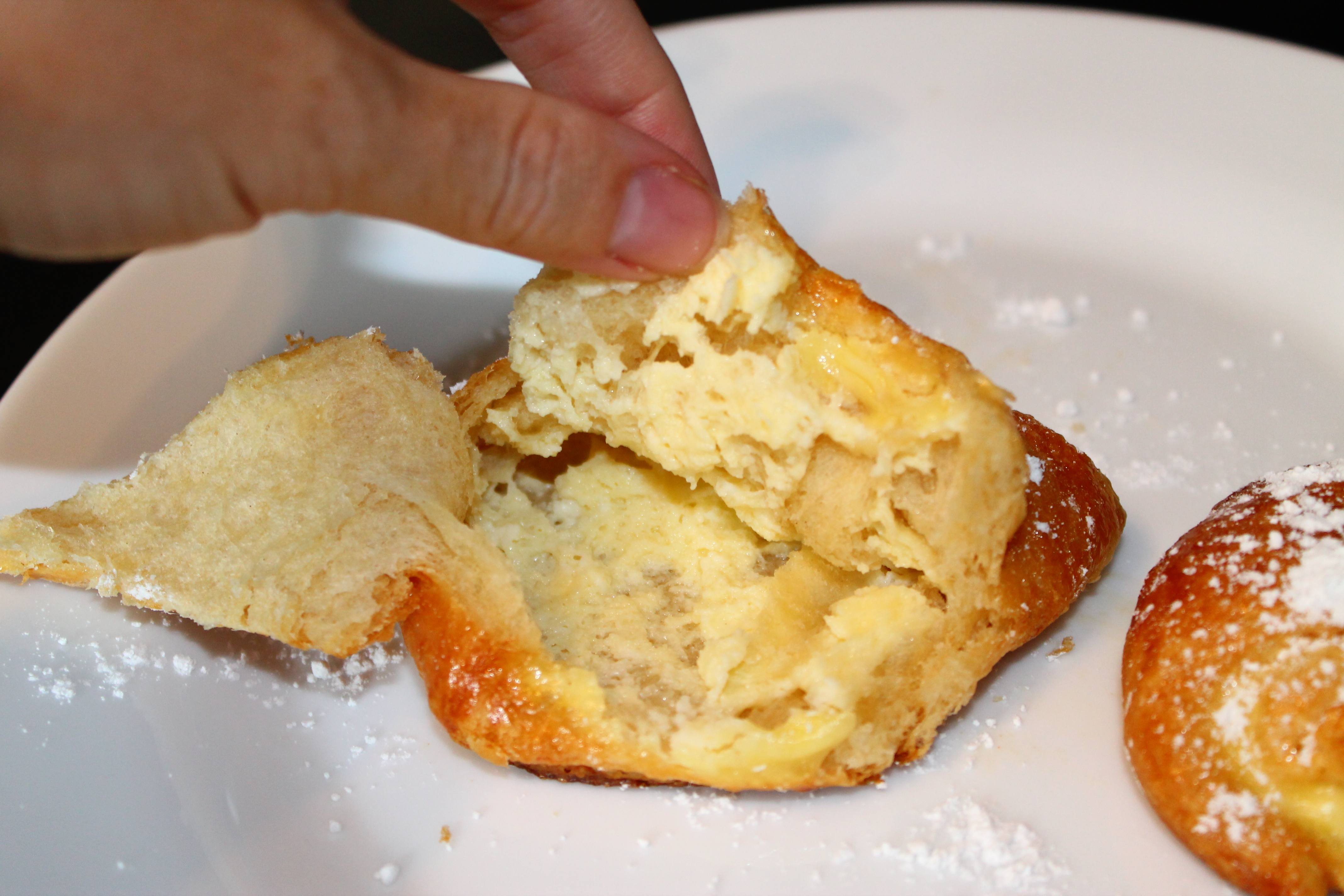 After tasting both pastries, the clear winner was the puff pastry version. The puff pastry was more flaky and the flavor of the pastry did not overpower the cheese filling; it had a great balance of flavors. The crescent rolls on the other hand had a strong artificial flavor of butter that almost seemed to clash with the sweet cheese filling. Well, that’s my opinion anyway. 🙂