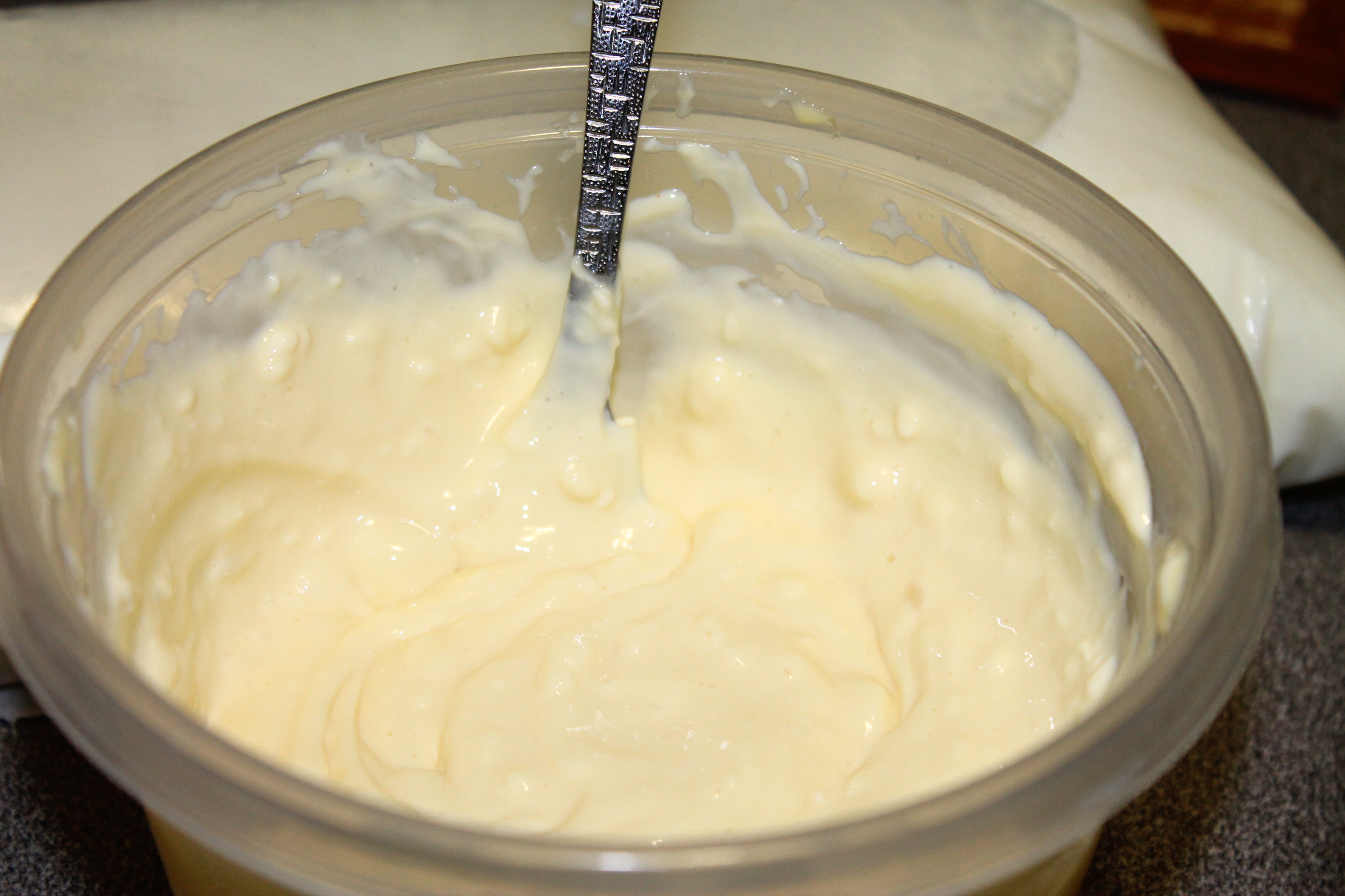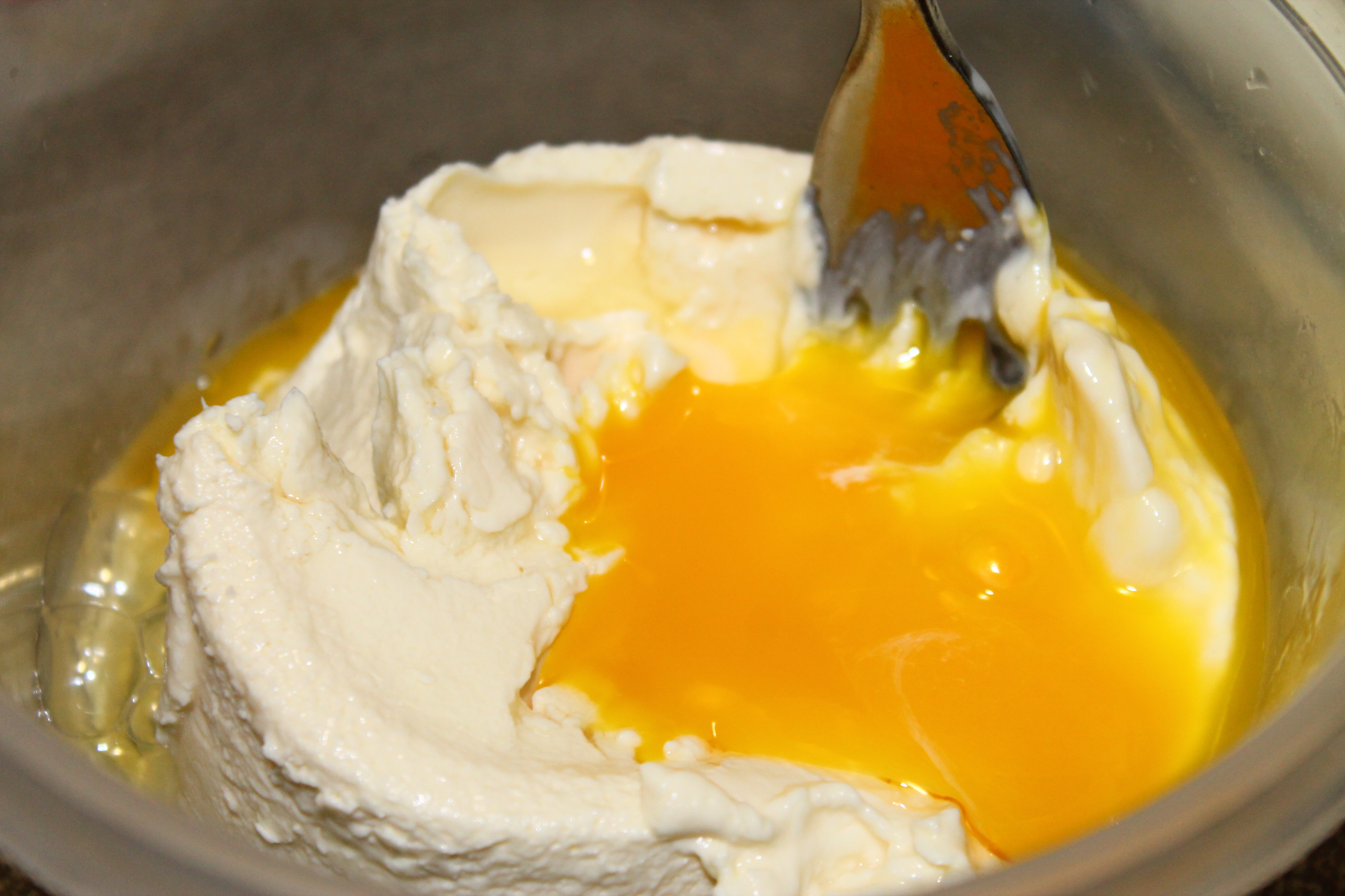 IMG_7827IMG_7846Mix one egg with the entire contents of the cream cheese. You can use a hand or stand mixer as well. Or just get a workout and do it yourself. You want the mixture to be creamy not chunky.