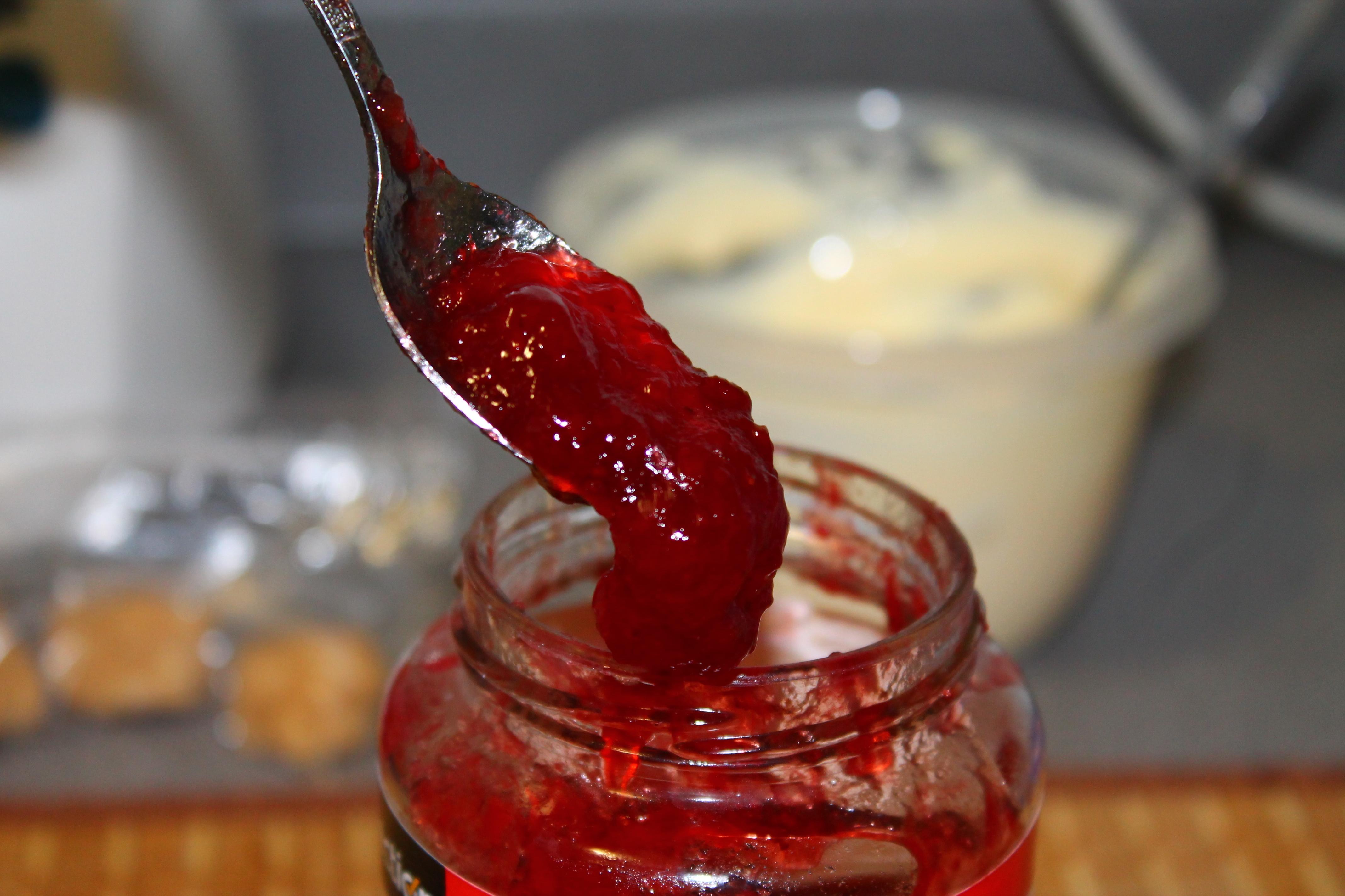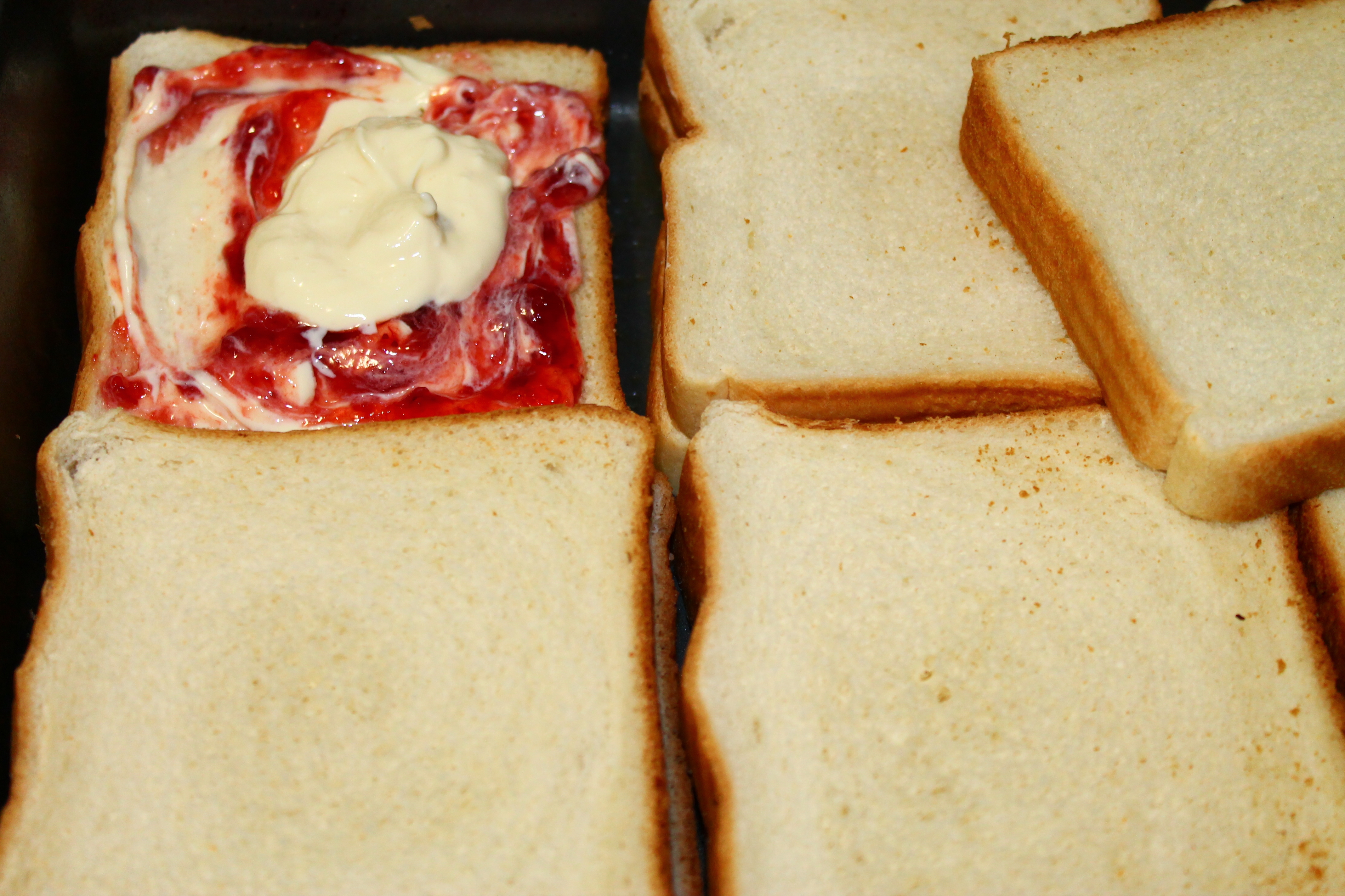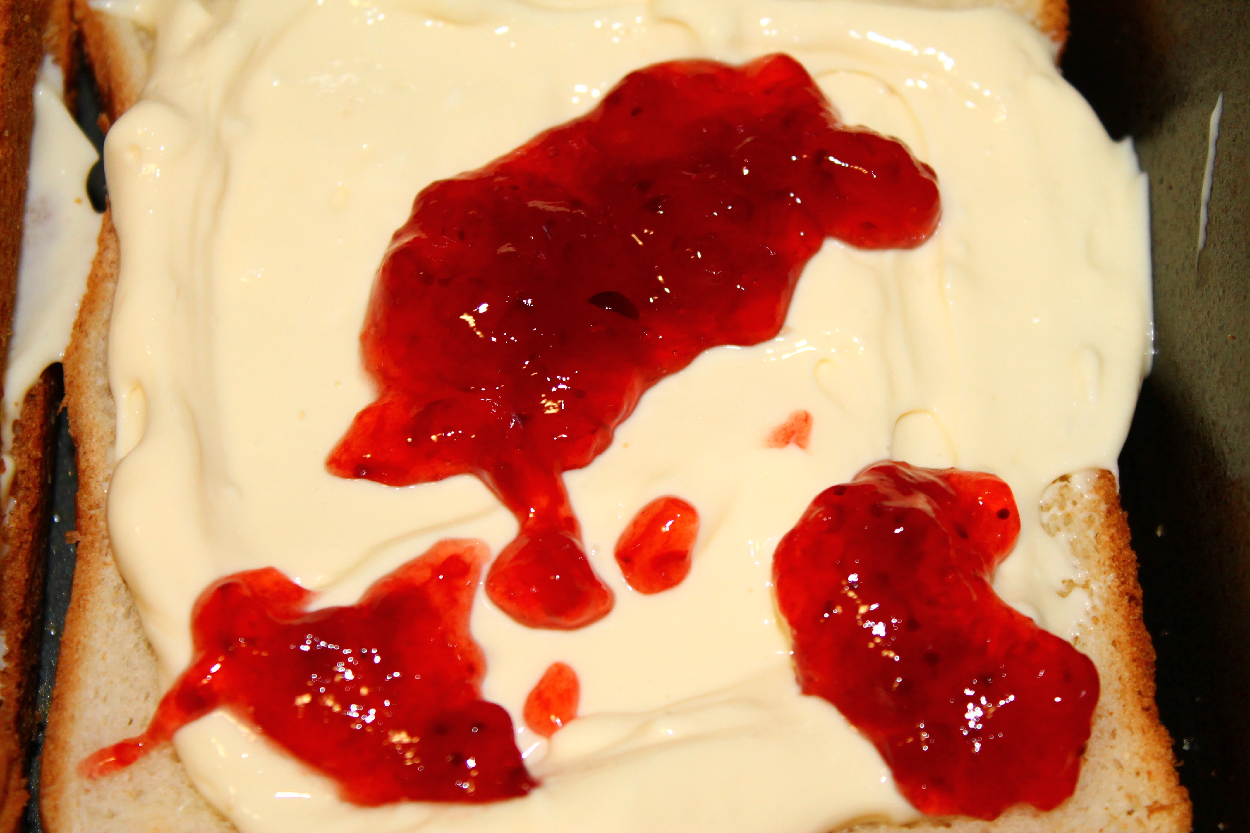 IMG_7882Spread the cream cheese on bottom slice first. Then add a dollop of jam and spread it evenly around the slice.