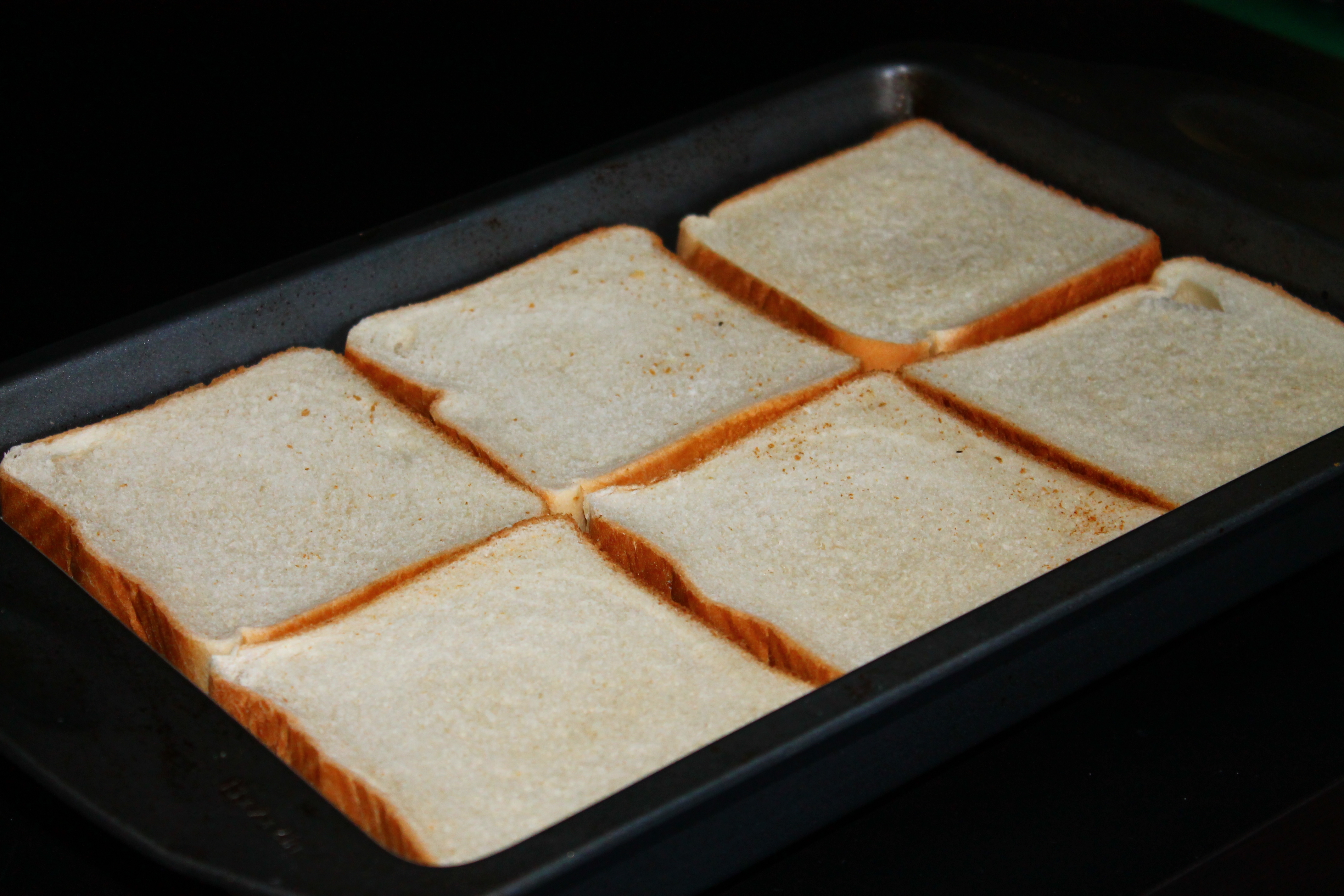 IMG_7875Place bread on baking pan. I was able to fit 12 slices; 6 sandwiches in total.