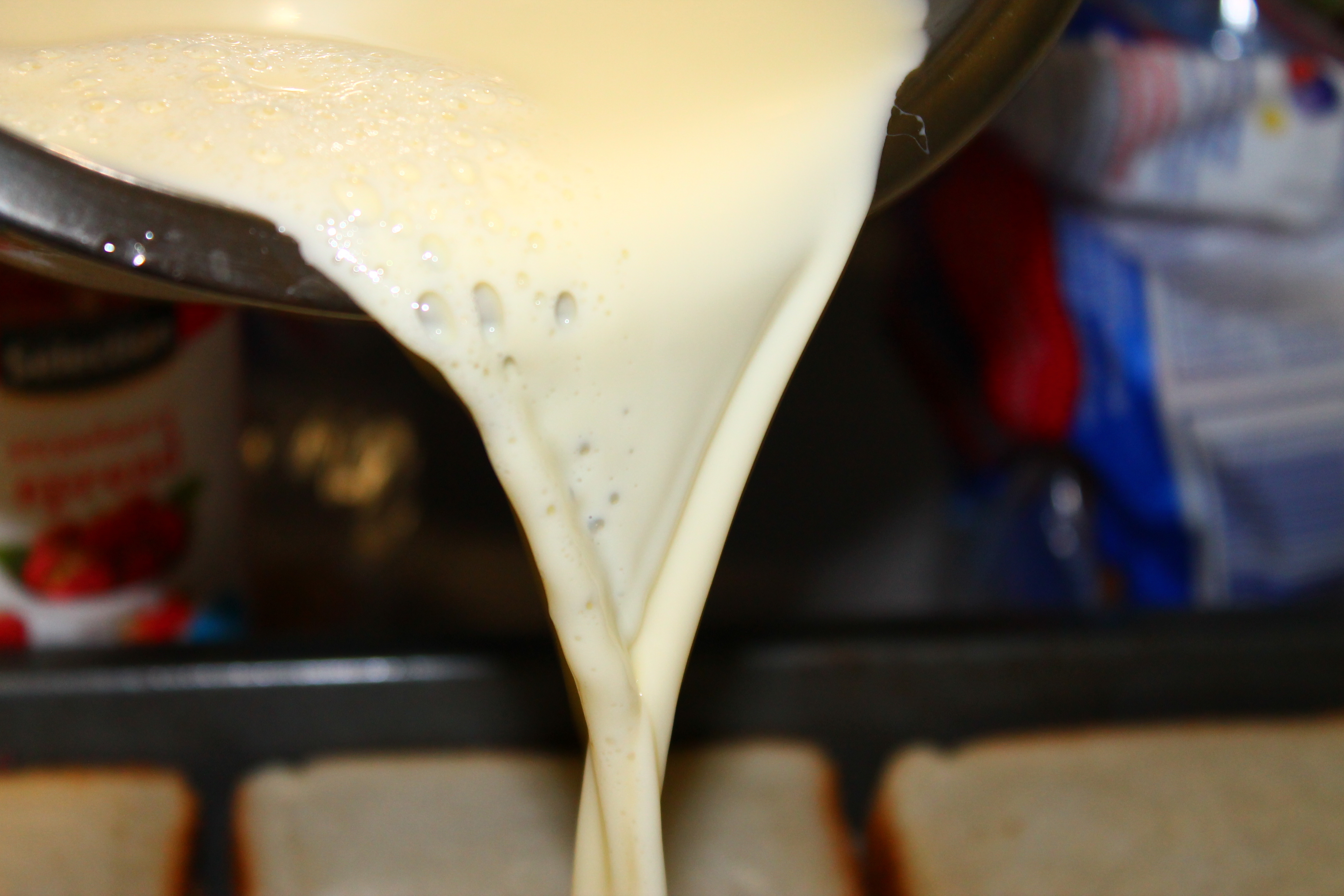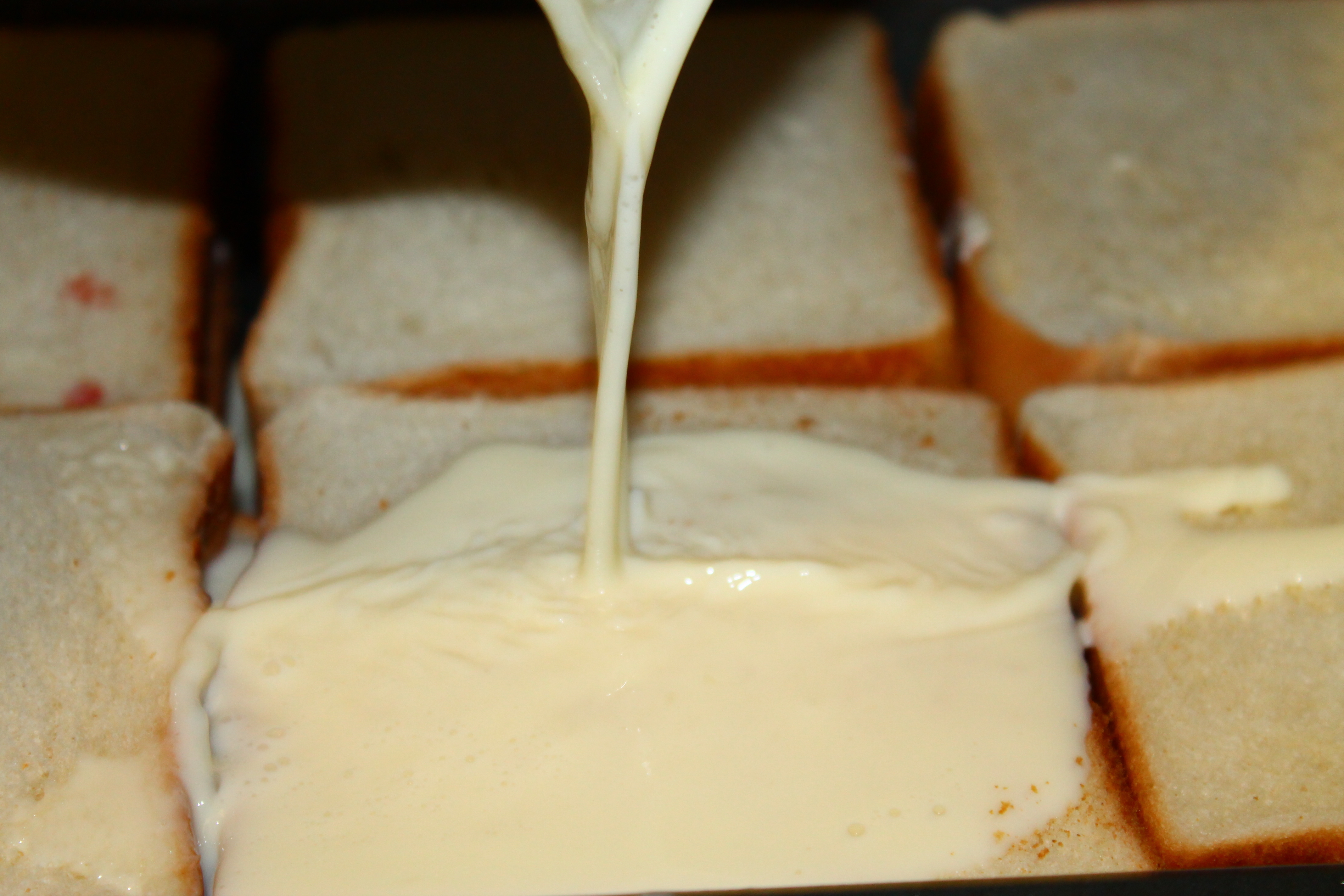 IMG_7915Once all the sandwiches are done, pour the milk and egg mixture over the bread until evenly distributed.