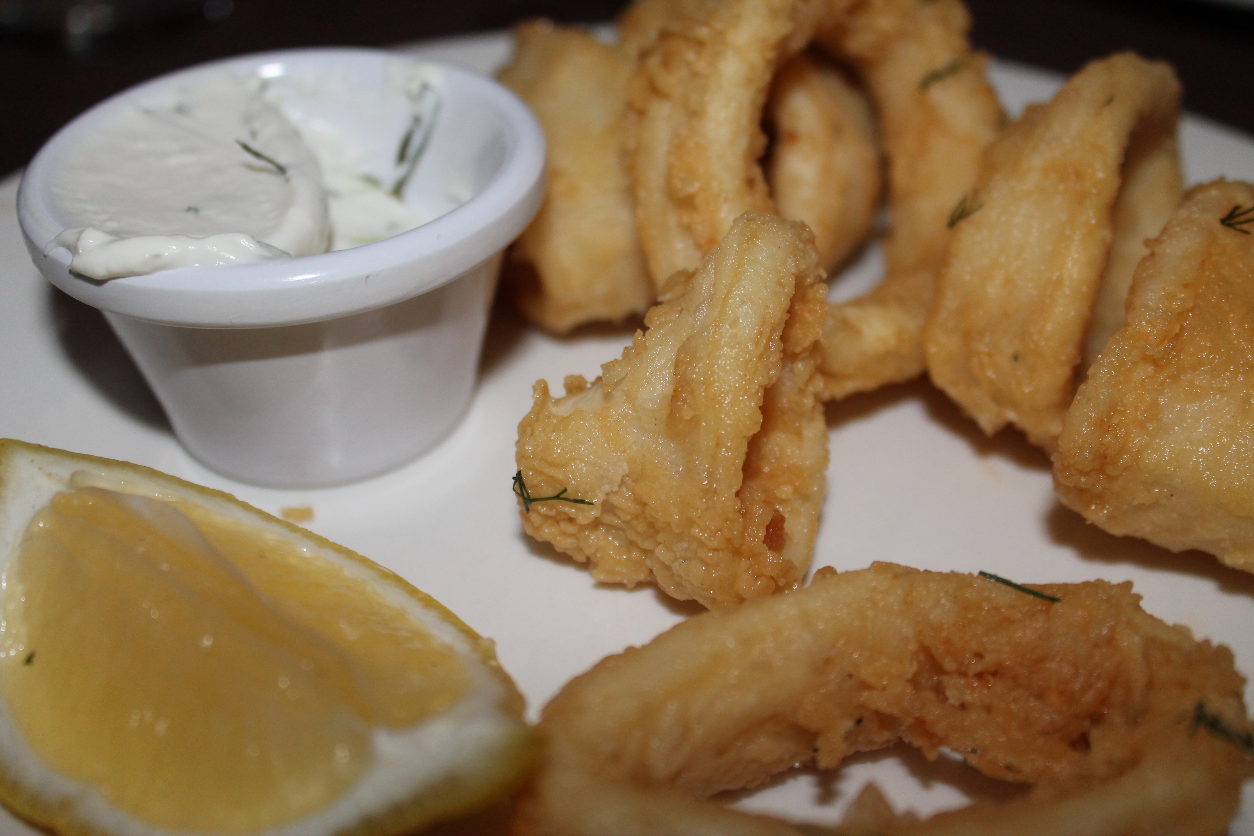 Floured Calamari: Tender calamari lightly fried and served with lemon. I love calamari and I found these pieces to be tender and a good portion size. There is nothing worse than chewy and thin pieces of calamari.