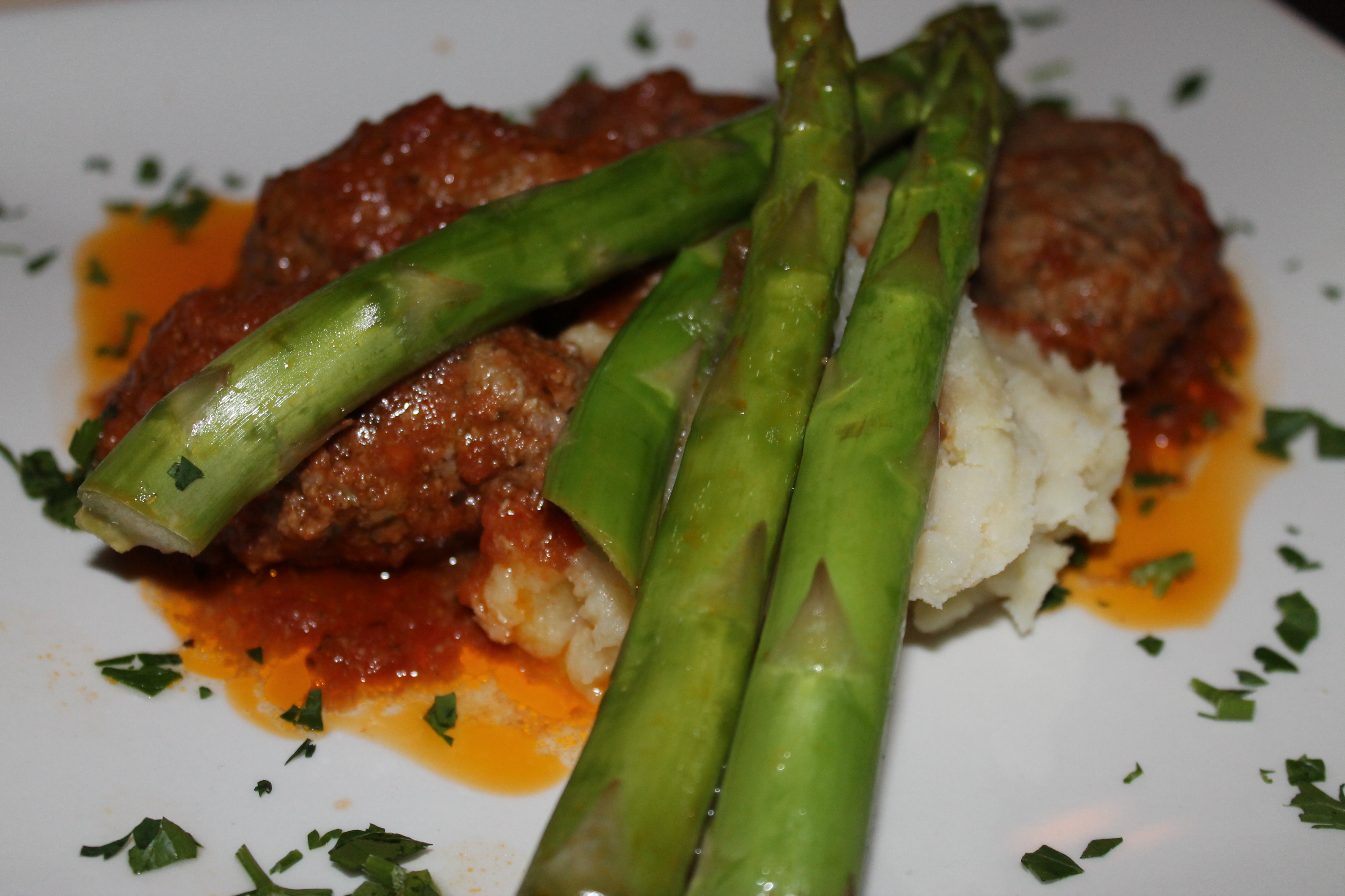 Soutzoukakia Smyrneika: Pan’s aromatic ground beef meatballs seasoned with cumin and topped with a tomato sauce. Served with asparagus and mashed potatoes. Quite a few people ordered this dish and I regret not ordering it as well. The meat was tender, the asparagus had enough of a crunch and freshness to balance out the sweetness of the tomato sauce and the soft texture of the mashed potatoes and ground beef.