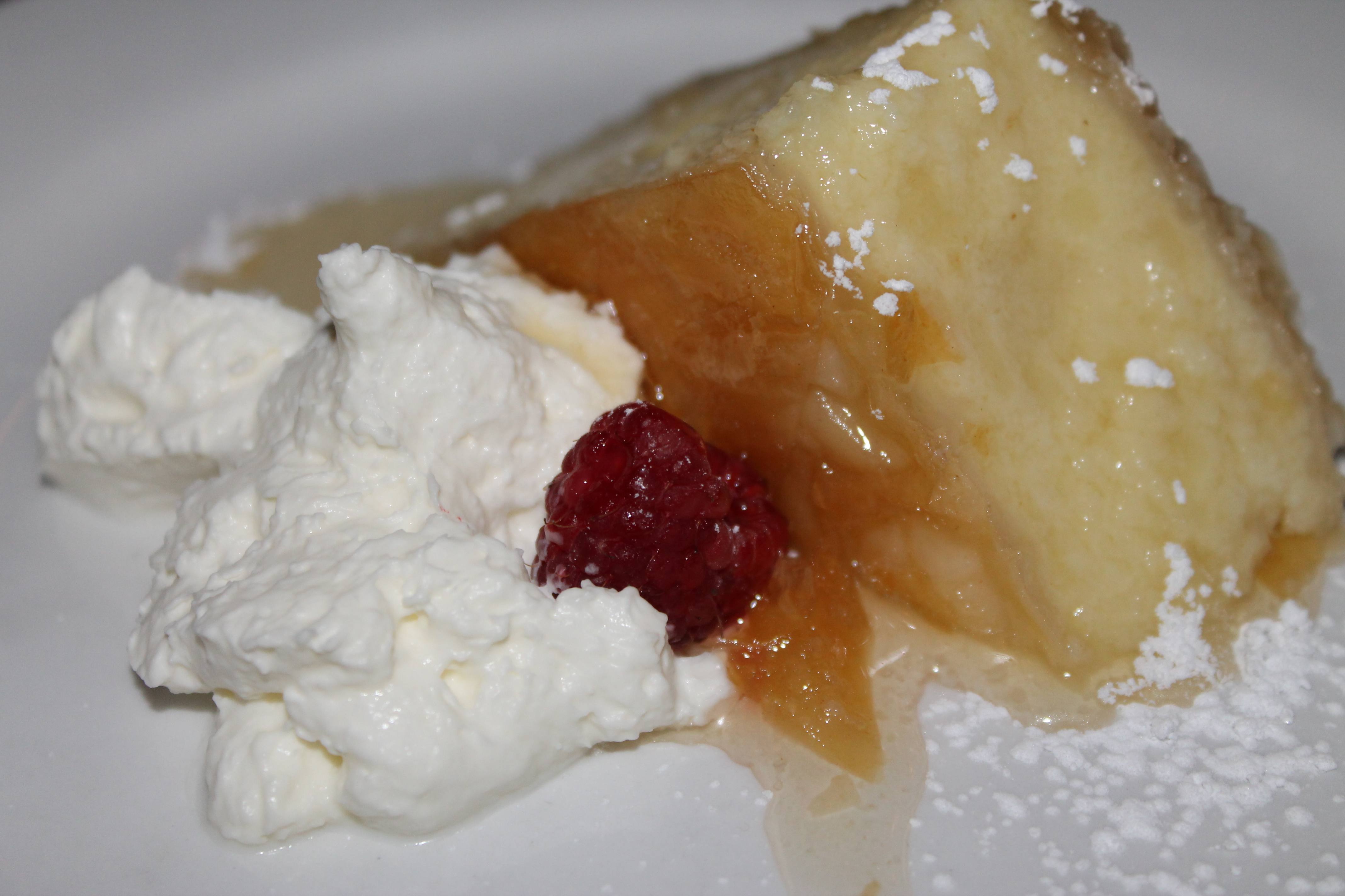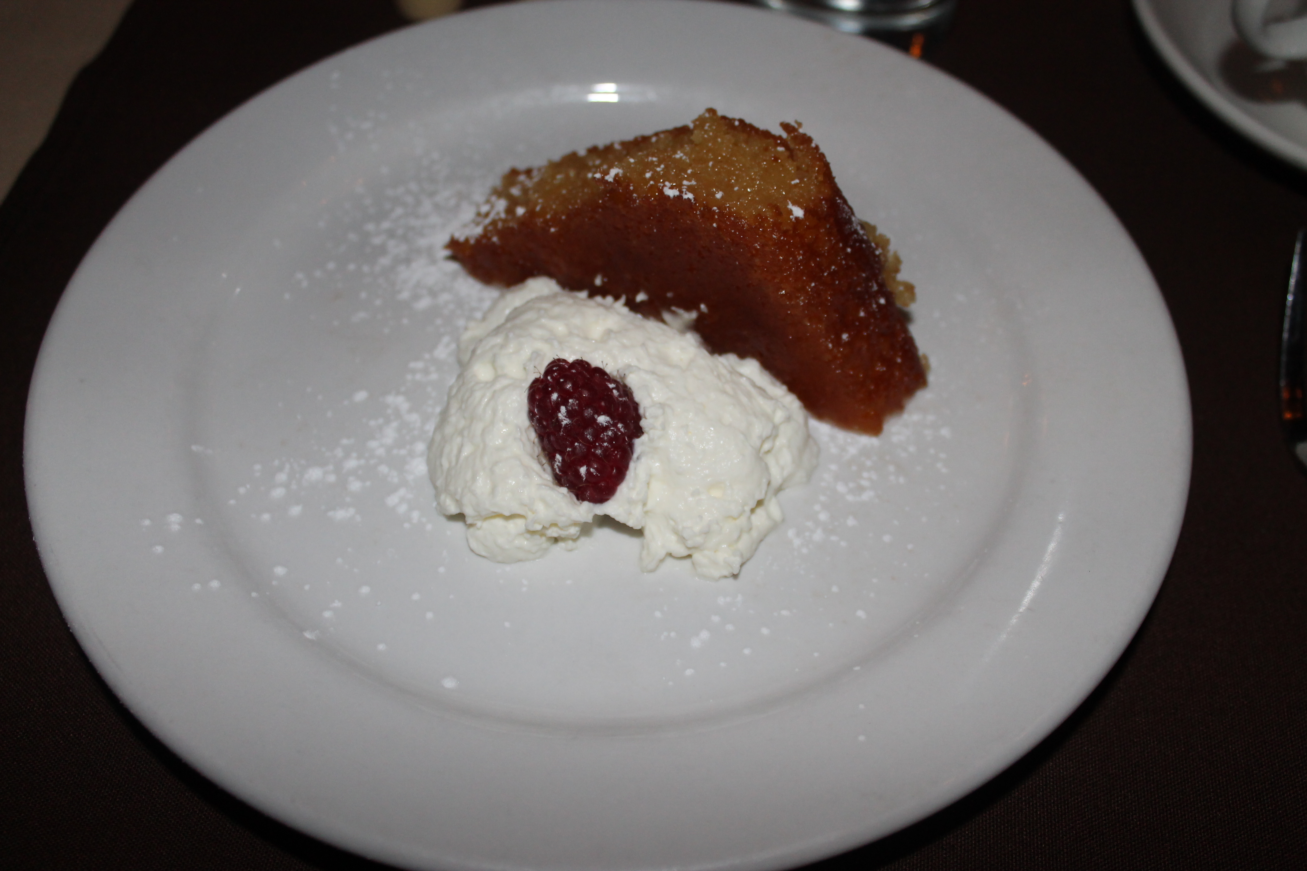 Karidopita: Honey Walnut cake. I don’t have much of a sweet tooth so I can’t really comment on the desserts. Overall I find that Greek desserts have too much honey. Though my guests really enjoyed their dessert.
