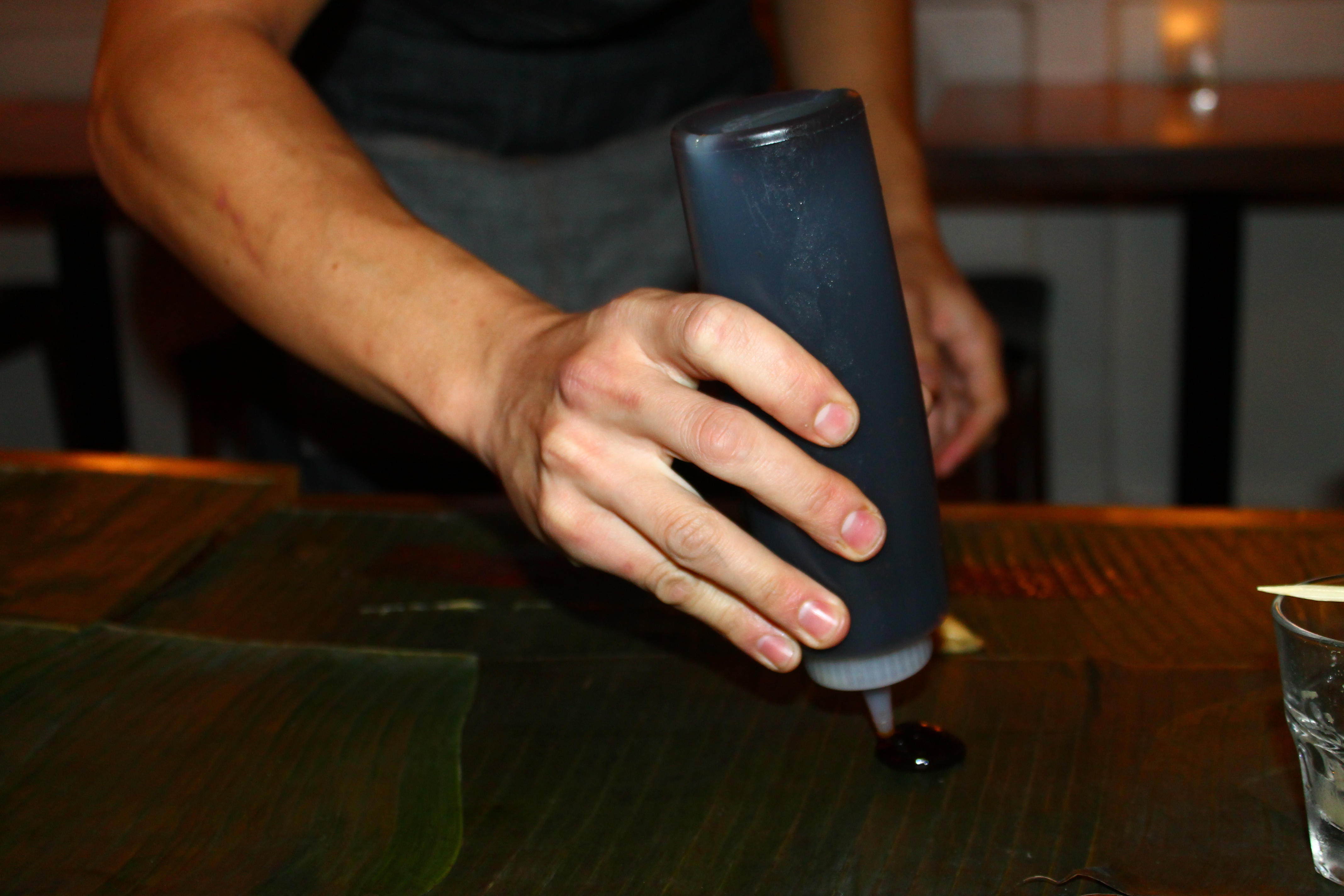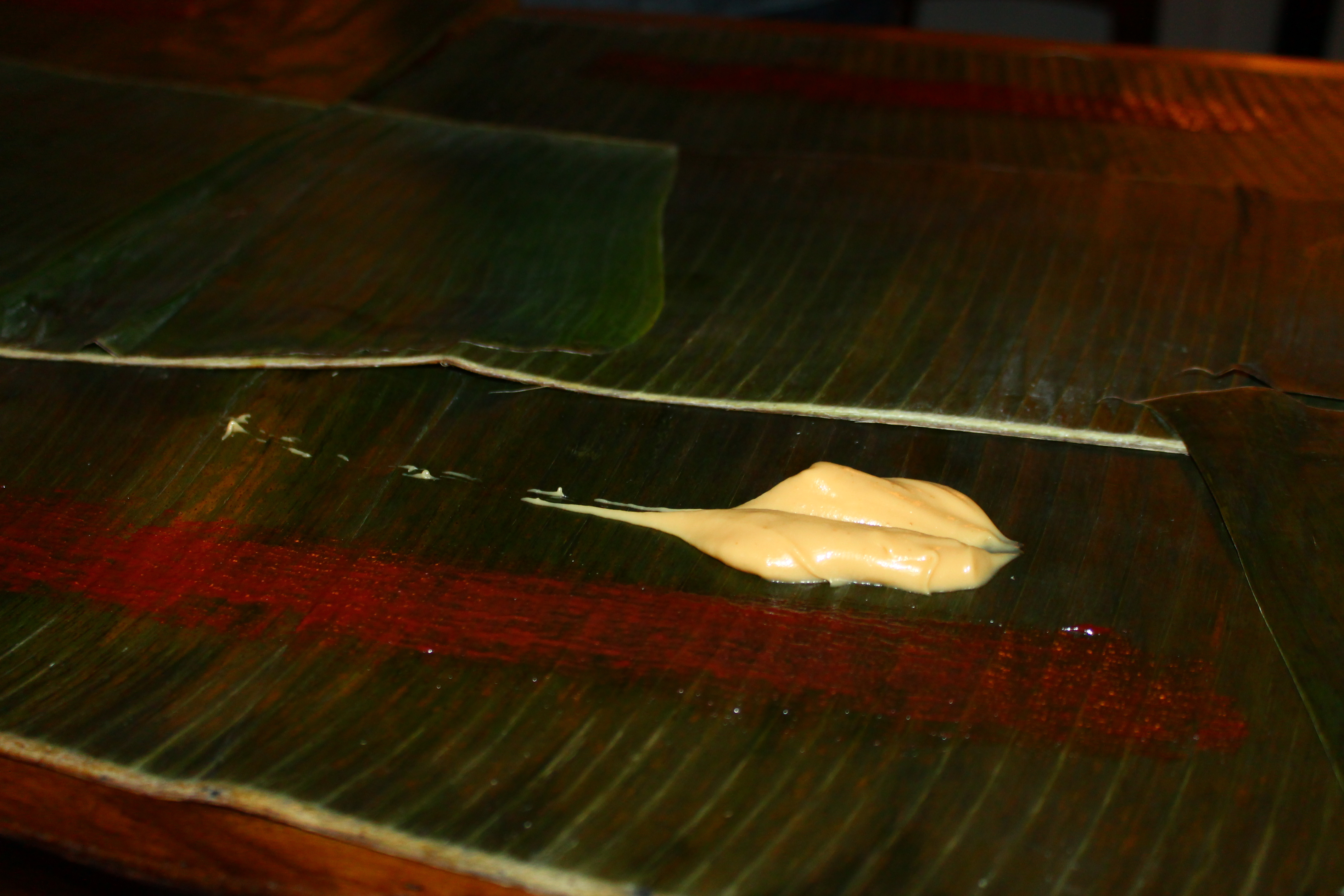 Every table had banana leaves covering it. Imagine a tablecloth made out of banana leaves.