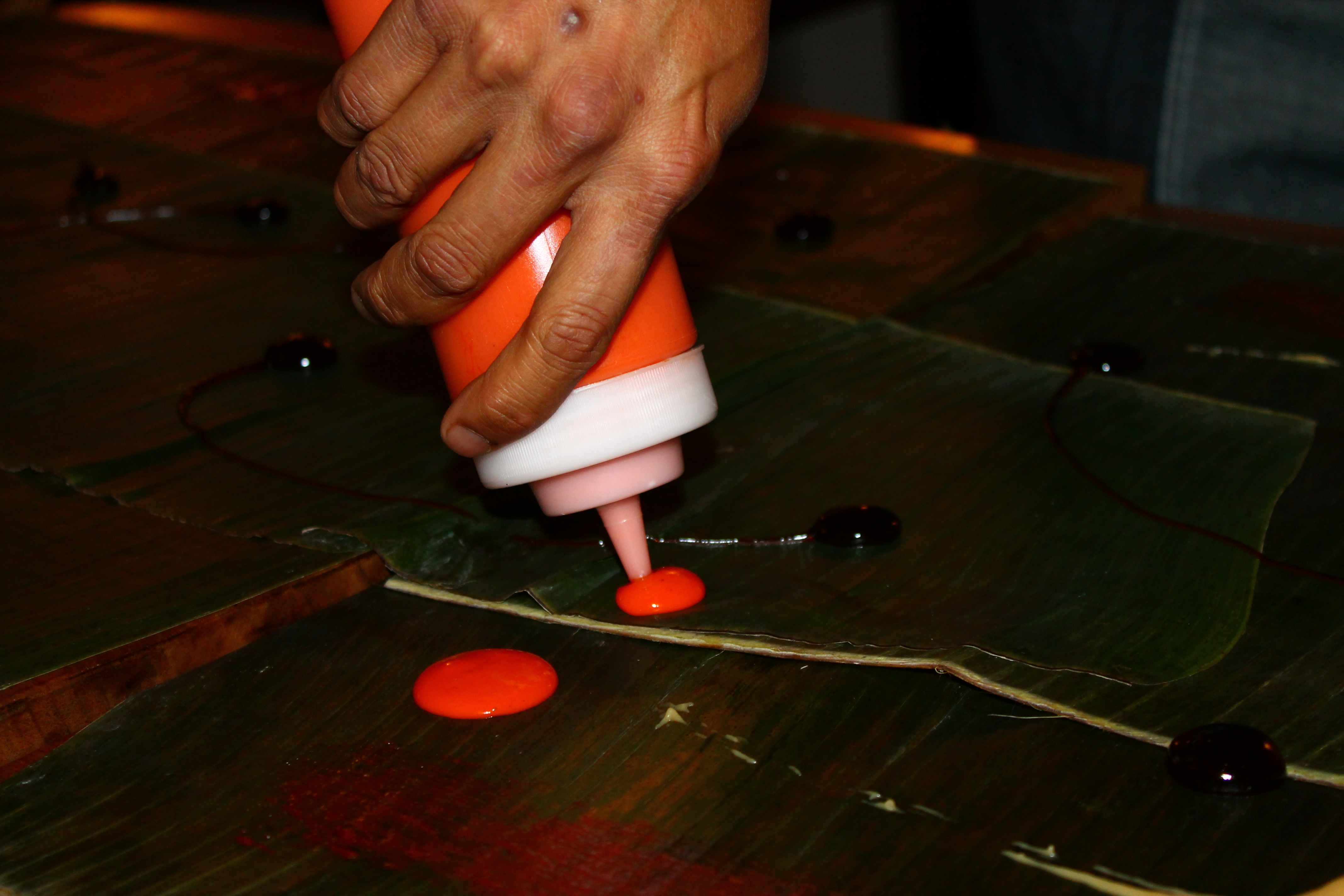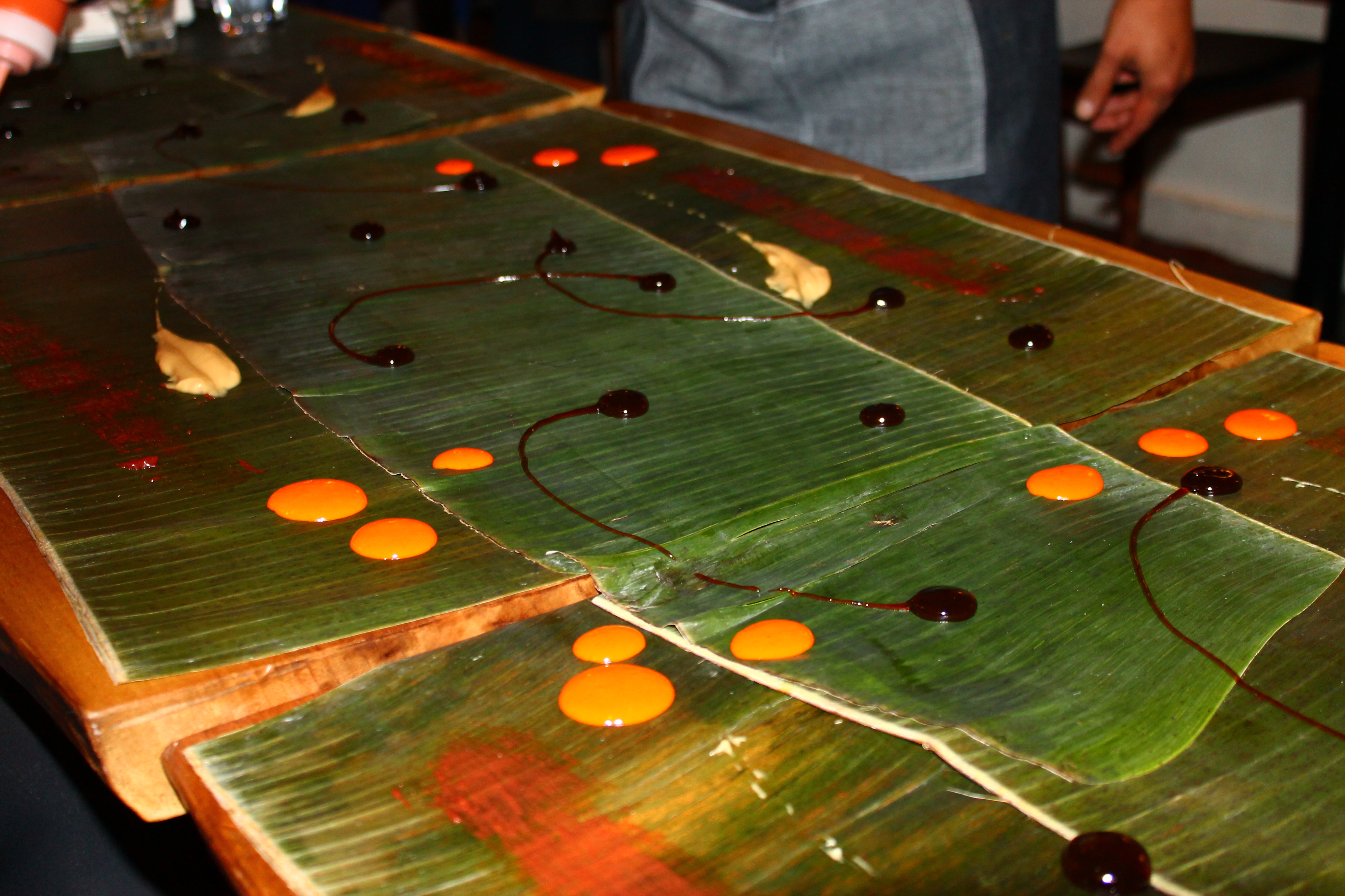 *Watching the food be placed throughout the table. It really felt like food was being used as art and the banana leaves was the canvass.