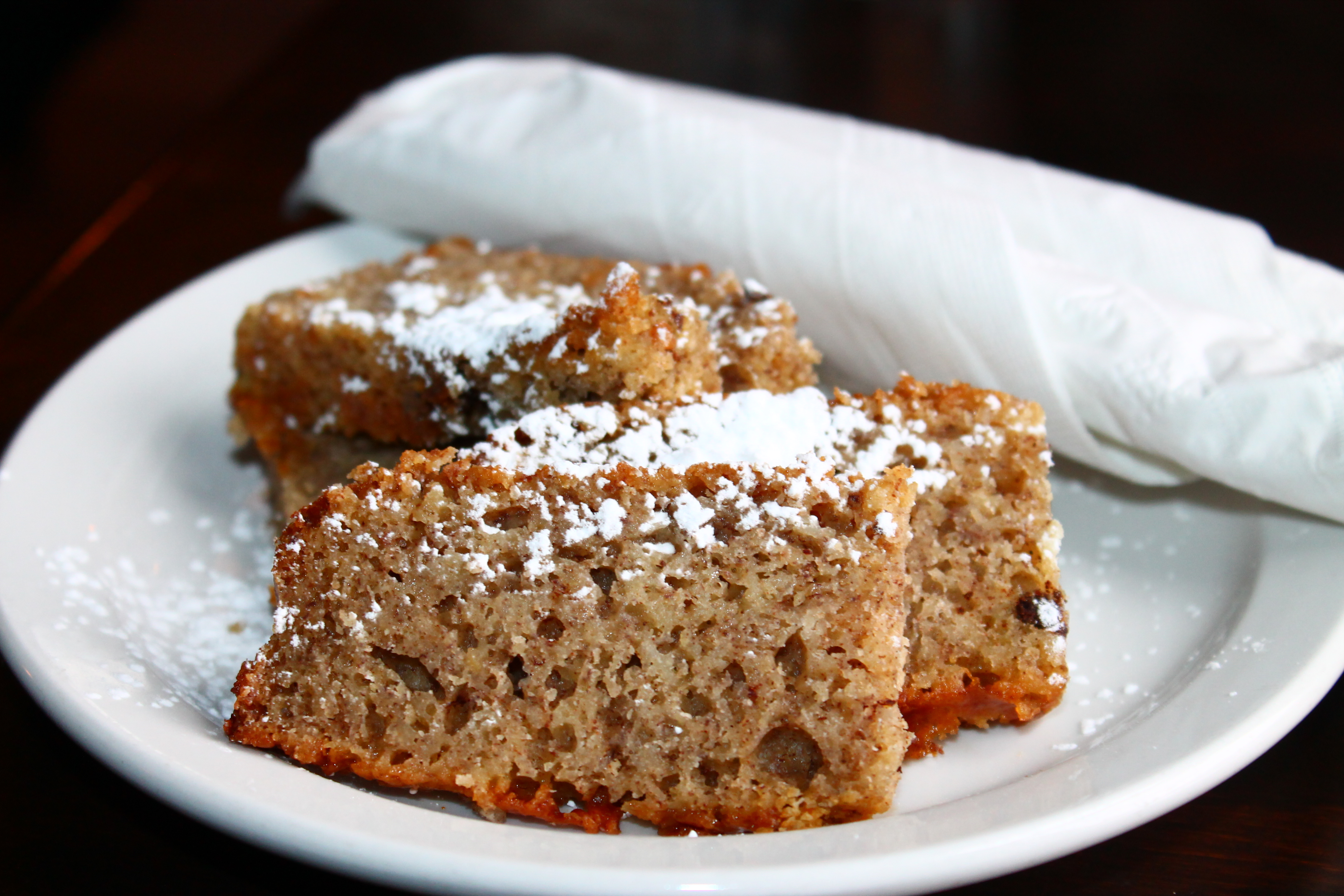 Immediately after sitting down, we were given banana bread on the house (every patron got some until they ran out). I bake often, and moist bread is a skill that I am trying to master. And you know what? The bread looked delicious, and tasted even better! I particularly loved the kick of cinnamon. Needless to say, I became annoyed when my friend ate the last piece—without asking me if I wanted it!