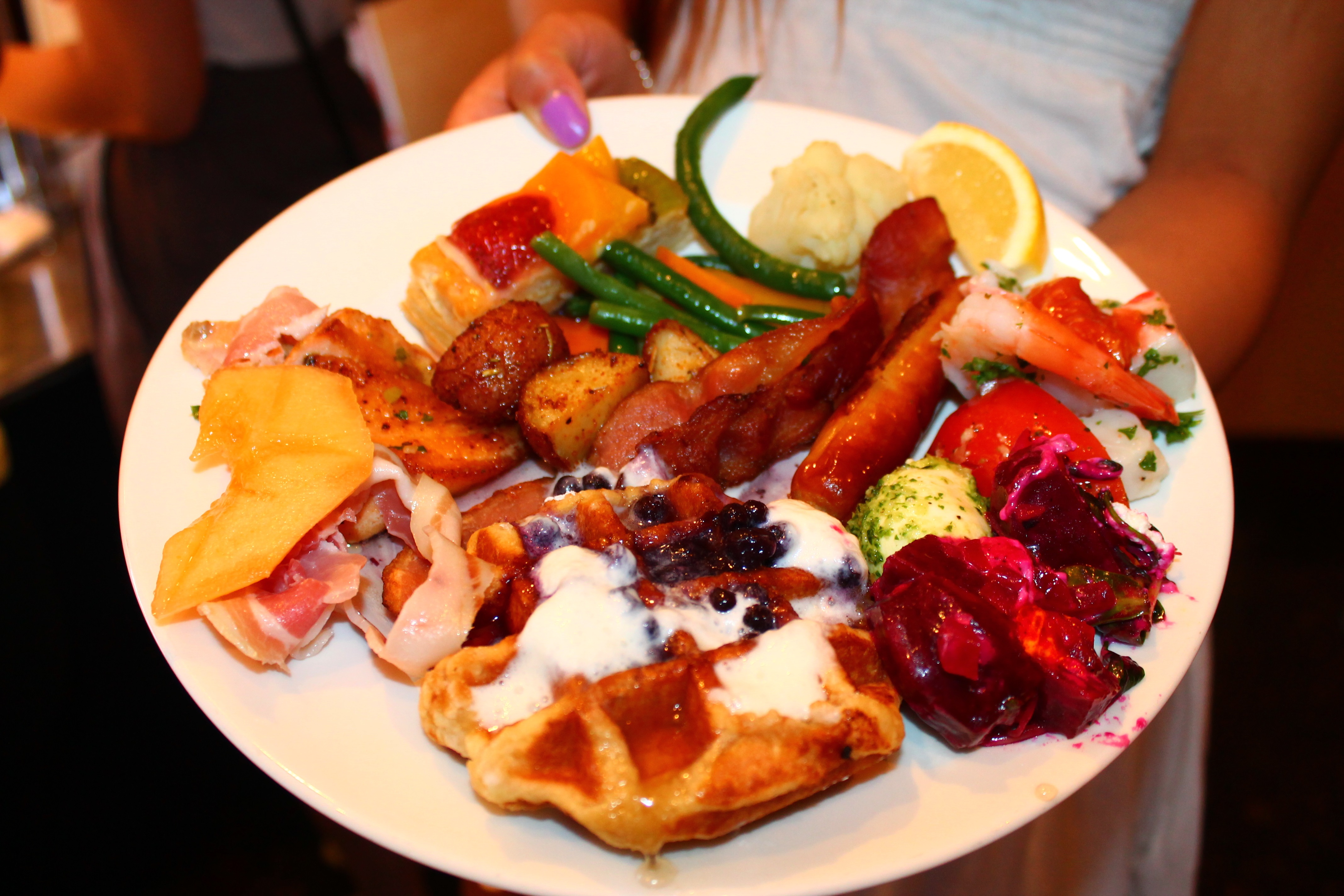 I visited Olio over the summer for a Yelp brunch event. I am usually apprehensive about buffets, and I guess it is wrong to assume that the food will be sub-par because of the volume that needs to be created. However, I was blown away by the quality of the food and the number of options we had to choose from at Olio. The spread included pastries, salads, breakfast potatoes, fruits, eggs Benedict, roast, waffles–the real kind–exactly like the ones you get in Belgium (I was in Belgium over the summer), seafood, among other things. I was specially impressed by the eggs Benny–I couldn’t believe how perfectly cooked the eggs were.