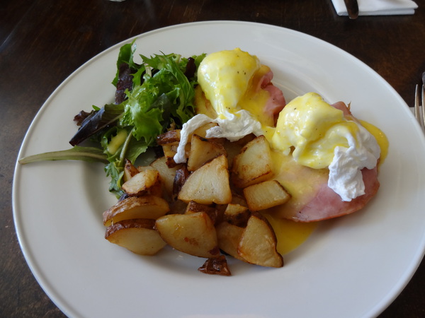 - Eggs Benedict $14.00: Fresh baked Cheddar Biscuit, layers of thinly sliced Ham, free run poached Eggs, classic, Lemony Hollandaise & pan fried Potatoes