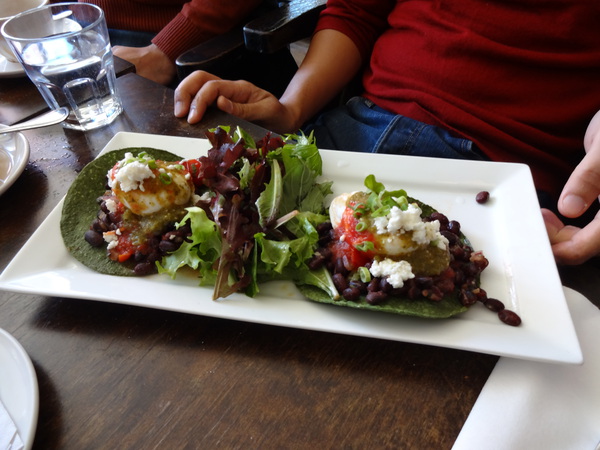 - Huevos Rancheros $14.00: With Smoked Tomato Sauce, Tomatillo puree, black beans, poached eggs, crispy Corn Tortilla, Goat Feta