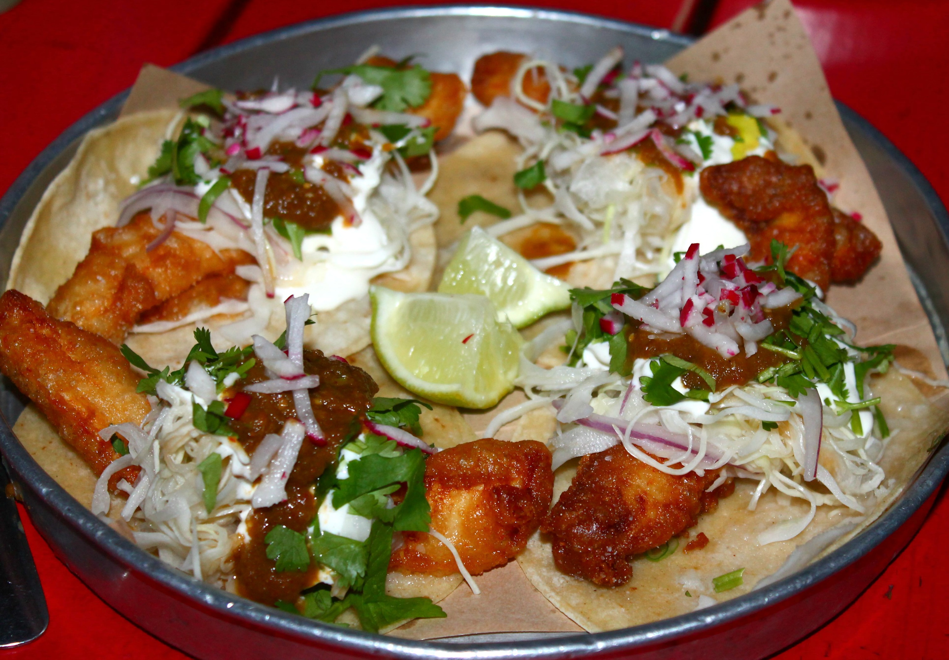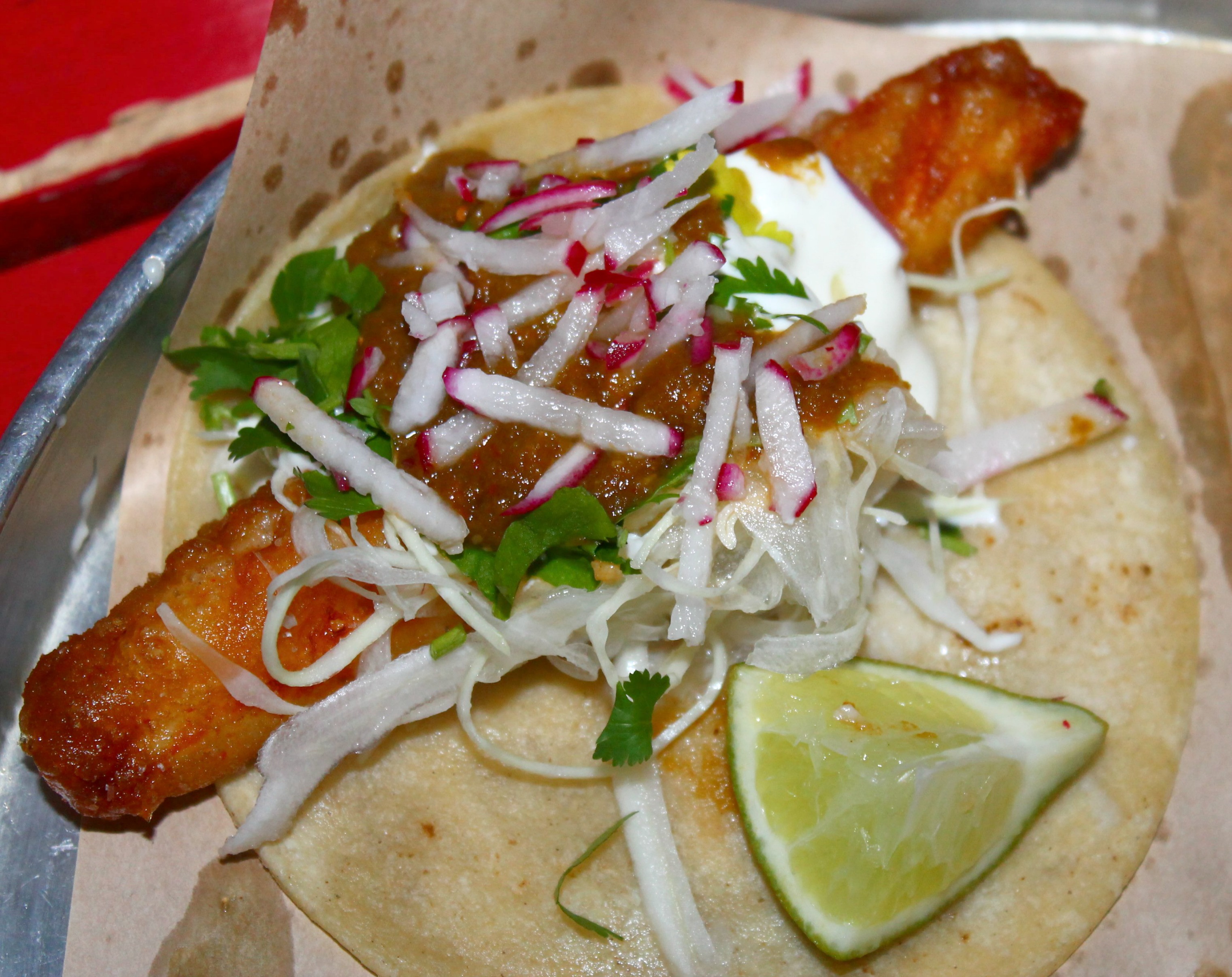 I love the baja fish tacos at Grand Electric. Many disagree with me and argue that La Carnita makes a better fish taco. I guess to each their own.