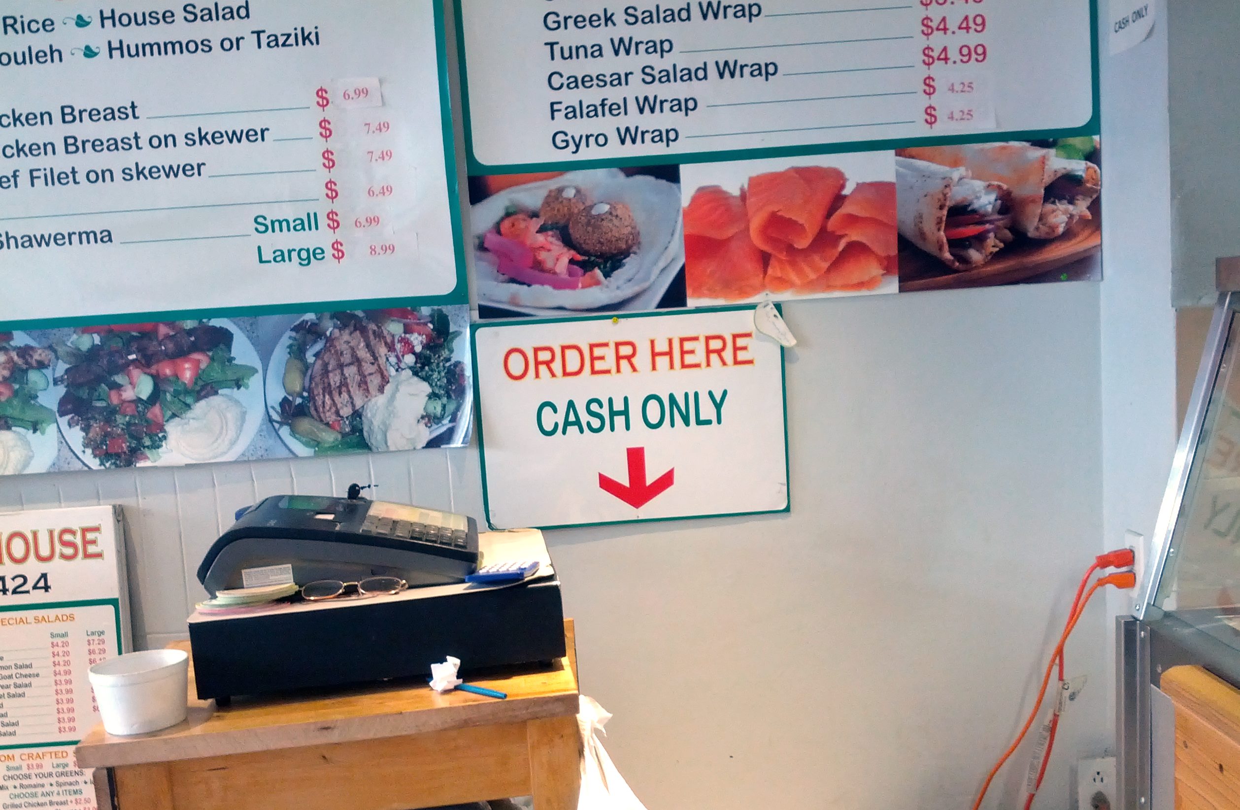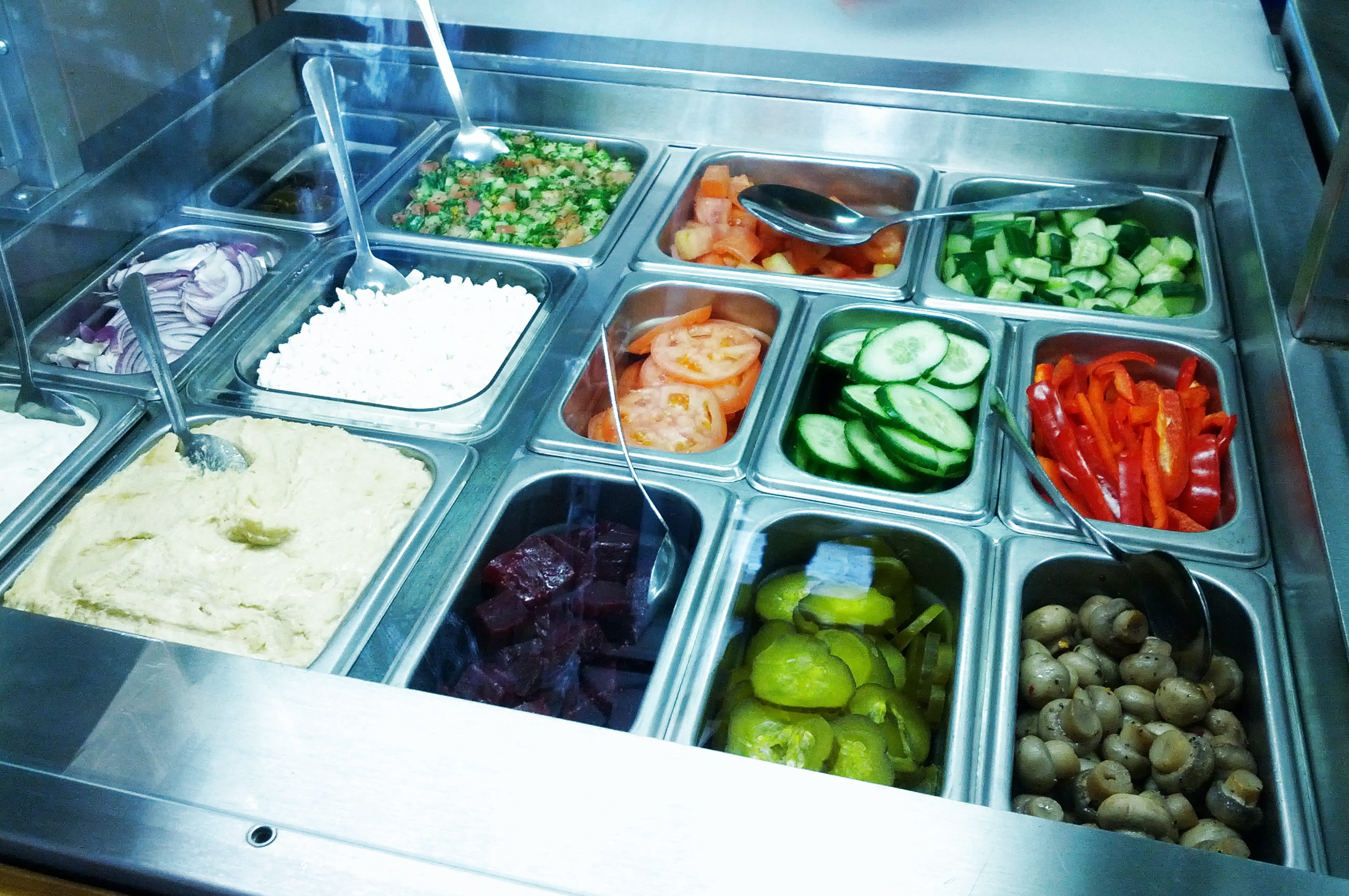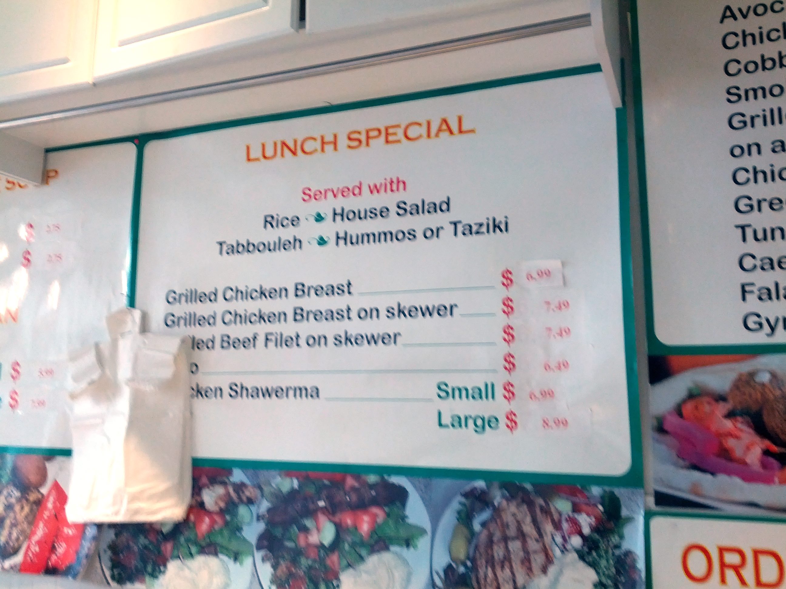 Fortunately for me today, I had the day off and happened to be walking by at 10:50am. I looked in and noticed that they were prepping for the lunch rush. It was freezing out so I was relieved to be allowed to wait inside. The first thing I noticed when I walked in and browsed the menus on the wall is that the prices are different from what other reviewers have quoted. For example, a small shawarma plate is $6.99 not $4.99. Nevertheless, $6.99 is a fair price.