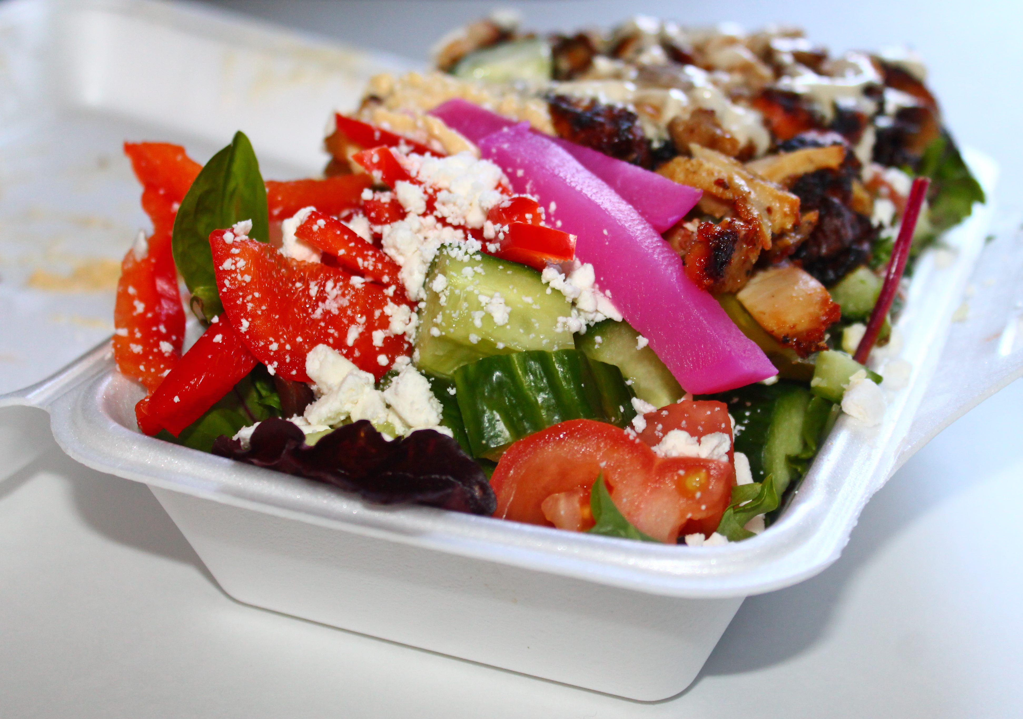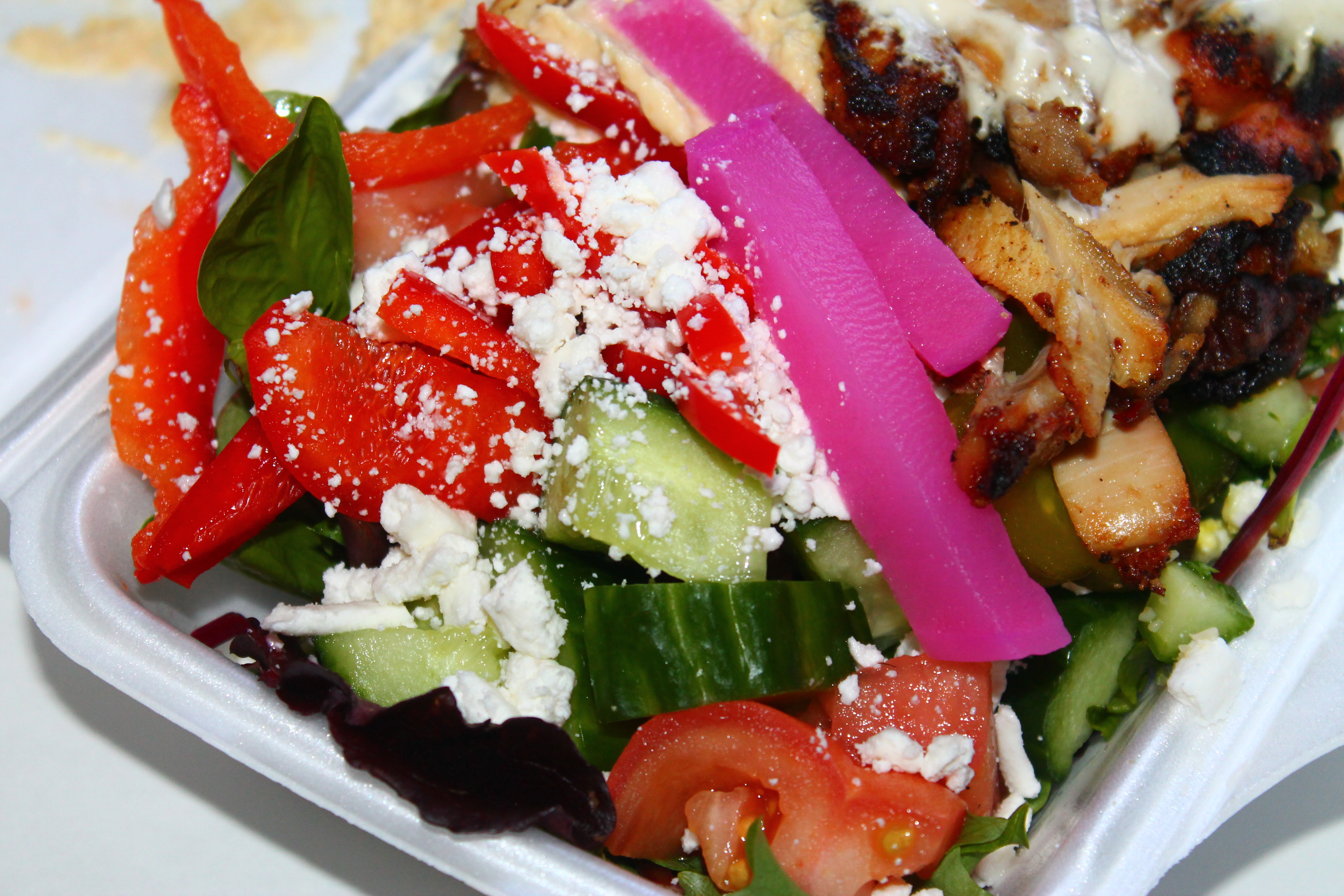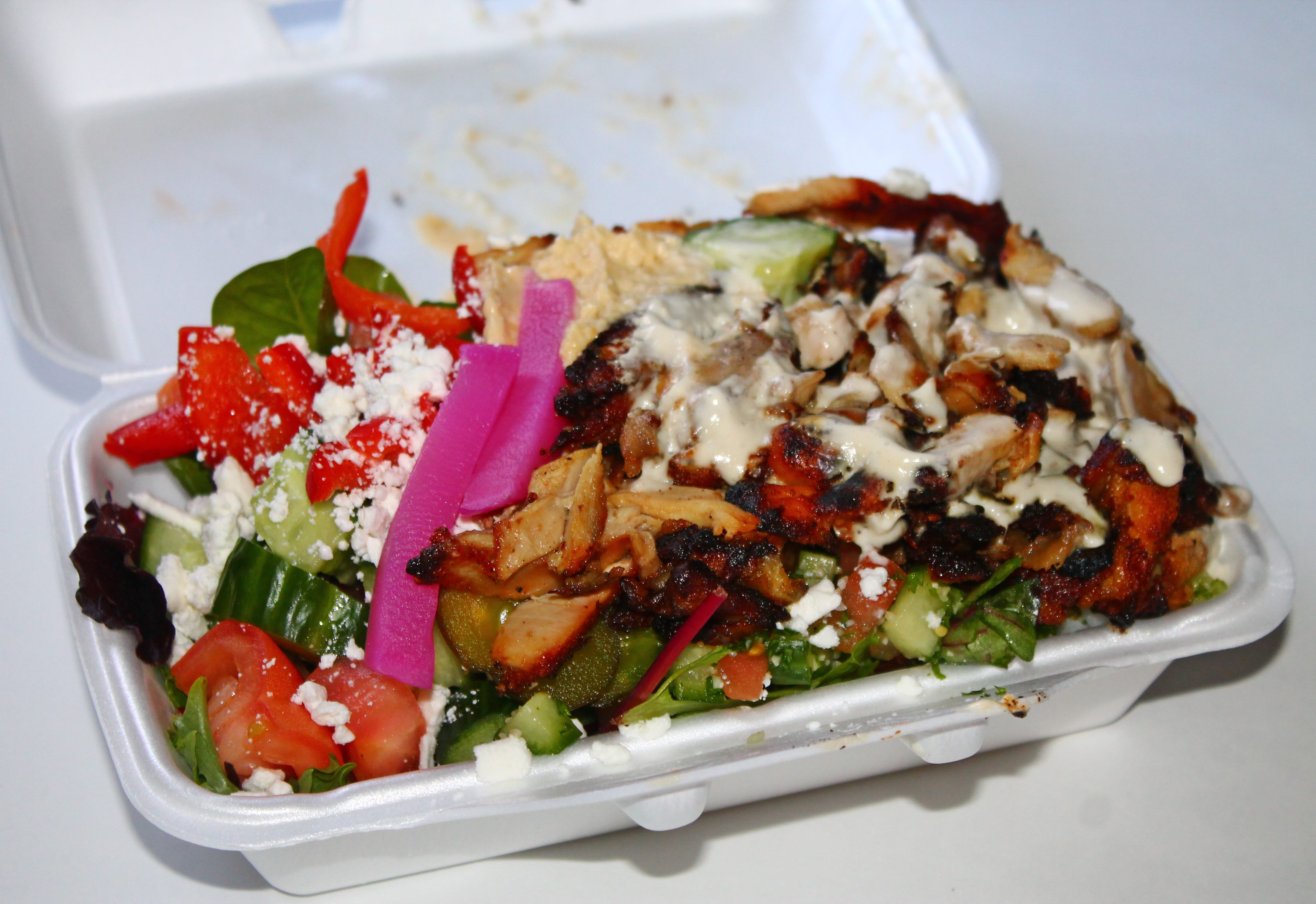 I decided to order a small shawarma plate with no onions. As they were putting my dish together I noticed that they had added chickpeas to my rice and I could see onions in it. I asked if those were onions and was told that yes they were. Then I reminded them that I had asked for no onions. The gentleman serving me looked a bit confused and told me that those were cooked onions. **Sigh. I have never understood why in the food industry cooked onions are considered to be a whole different species from raw onions. Onions are onions! Anyway, the gentleman was really cool about it and although I suggested he use the same container, just remove the chickpeas, he said, “no no…I will make you a new one. Not to worry. Most people are okay with cooked onions, just not raw onions. But thank you for letting me know.” And so he continued to assemble my plate….and it kept growing, and growing…WOW…that was a lot of food! This was a small??!! Finally he struggled a bit closing the container and wished me a good day.