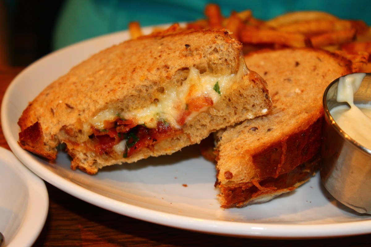 CROQUE CHAMPIGNON (VEG) Grilled portobello mushroom, caramelized onions, arugula, triple creme brie + organic sunny egg on grilled multigrain + frites $14.5