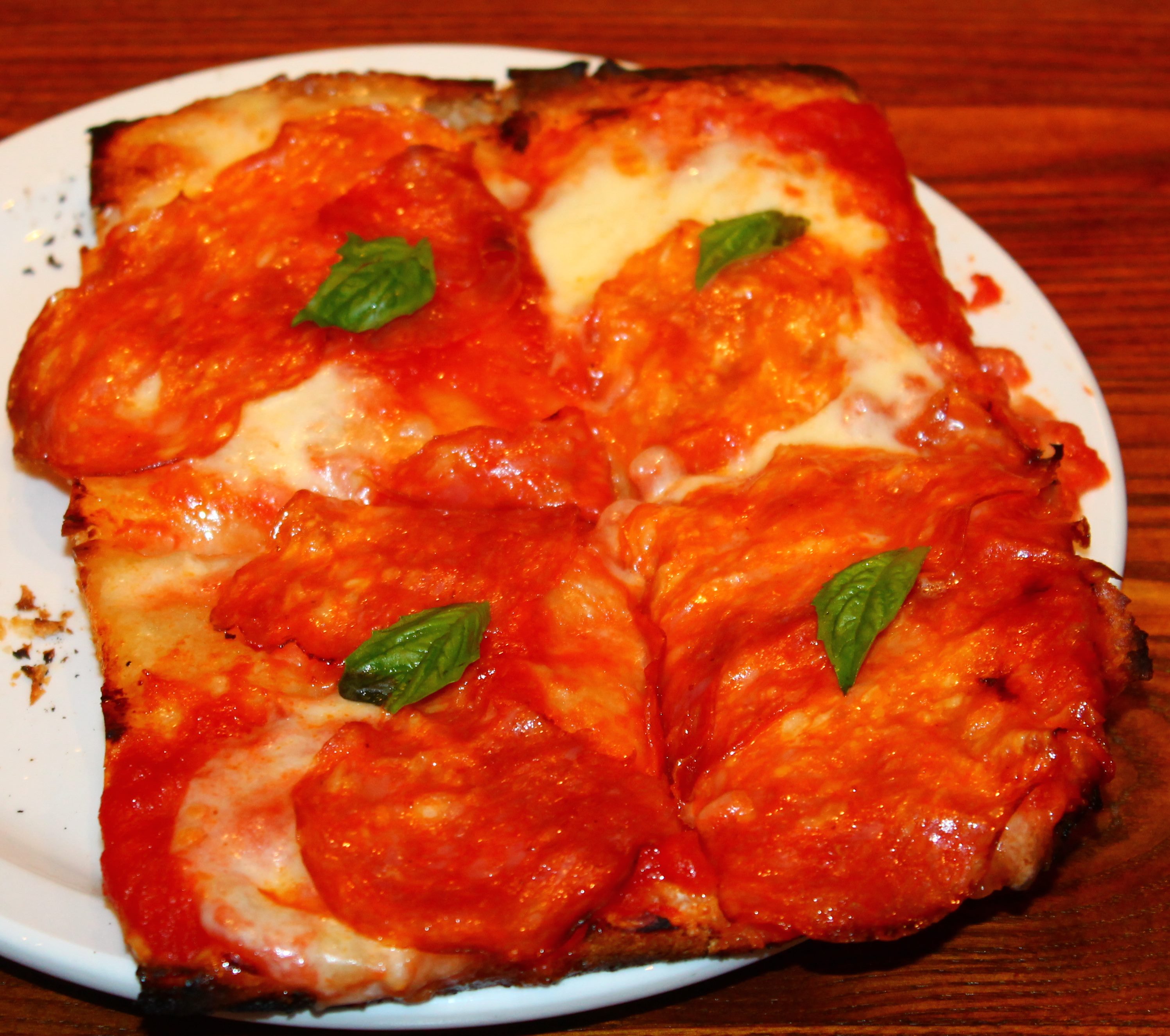 - Pomodoro with tomato sauce, garlic infused olive oil, fresh basil, grana padano and chives