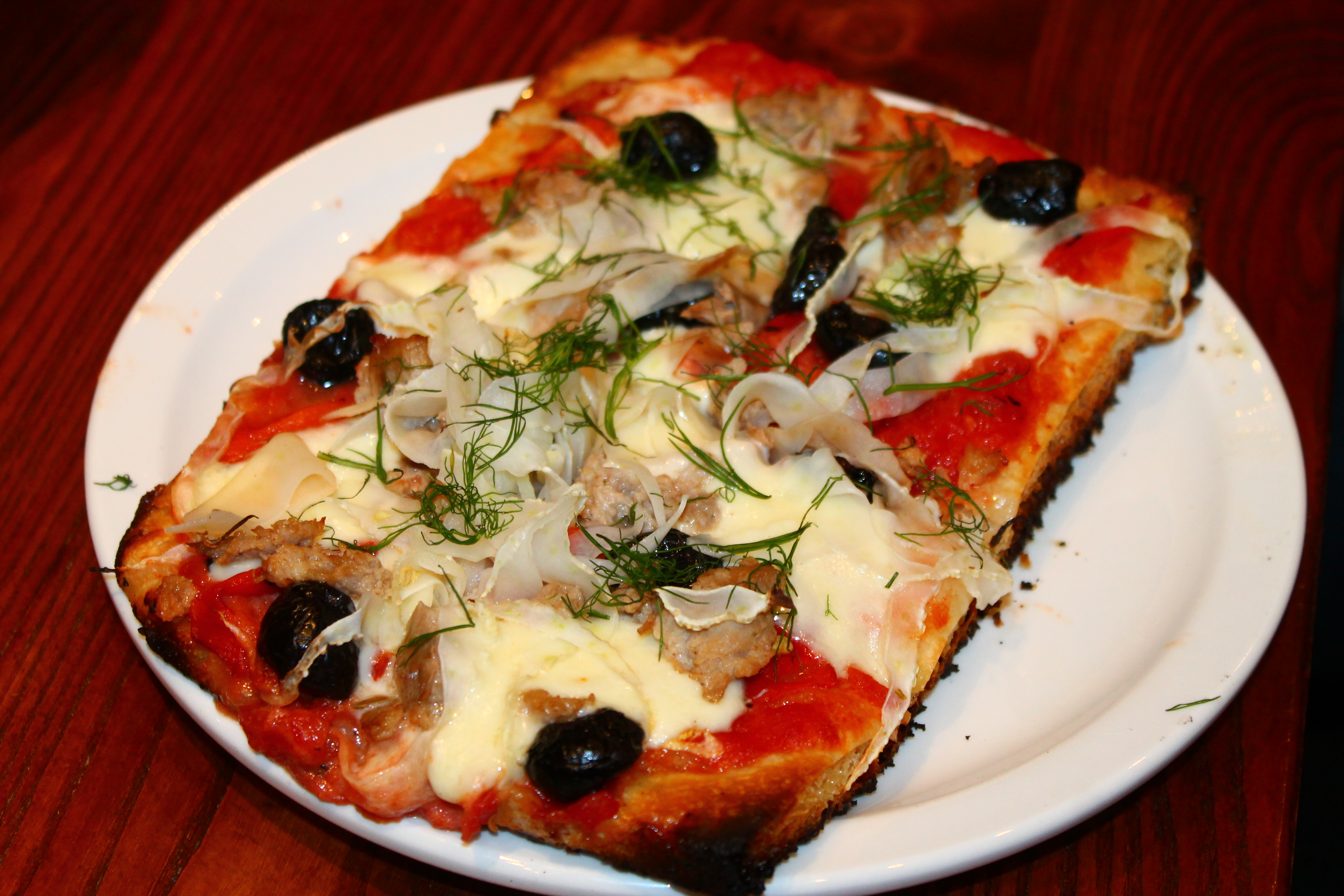 - Salsiccia made with Italian sausage, shaved fennel, roasted red pepper, chili flake, black olive, Fior di Latte, fennel fronds