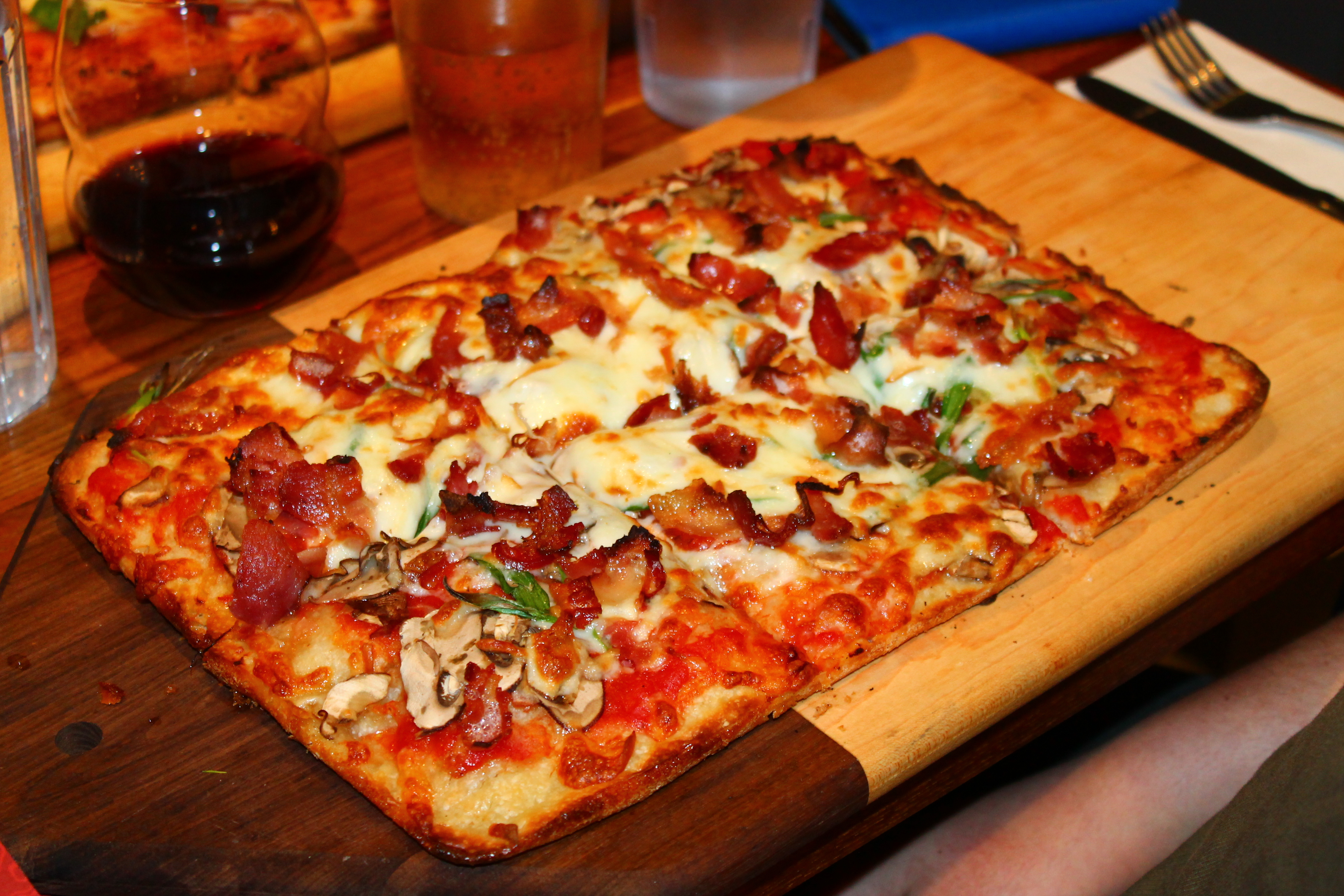 - Pizza – they come in three sizes: personal (4 pieces), medium (6 pieces), large (guessing 8 pieces) and the prices range from $6.50-$31