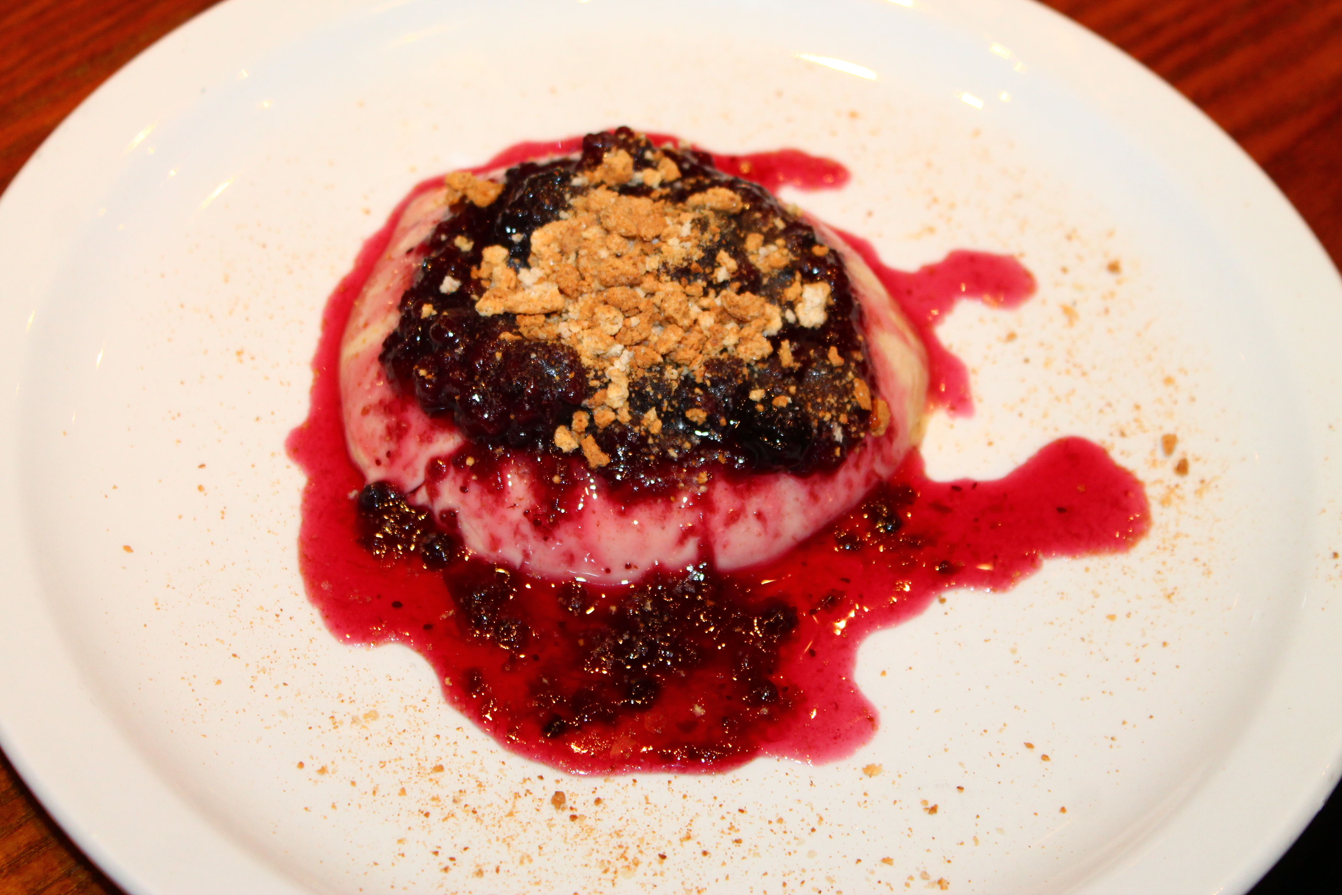 - Panna Cotta made with Seasonal compote, crumbled amaretti cookie, cinnamon