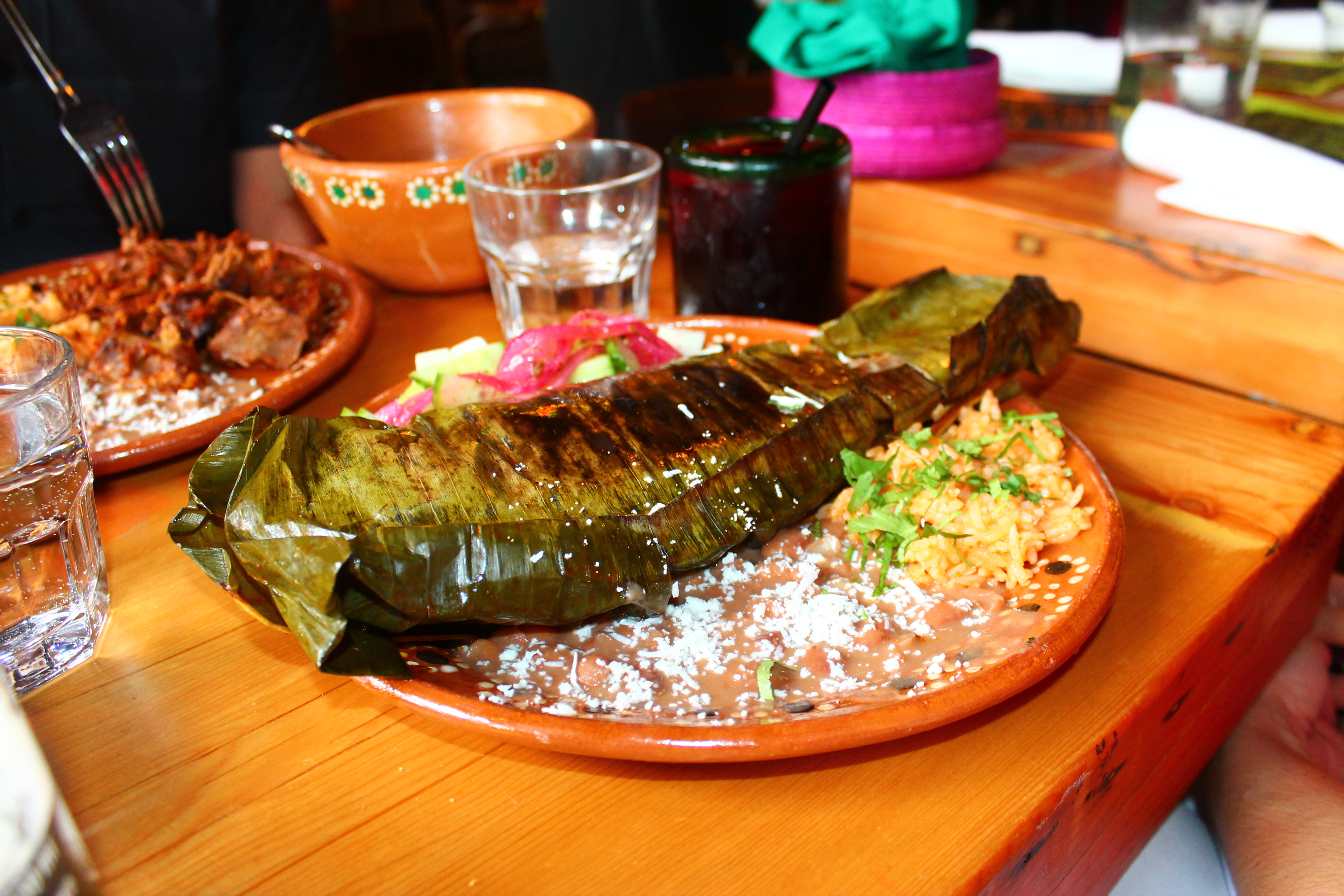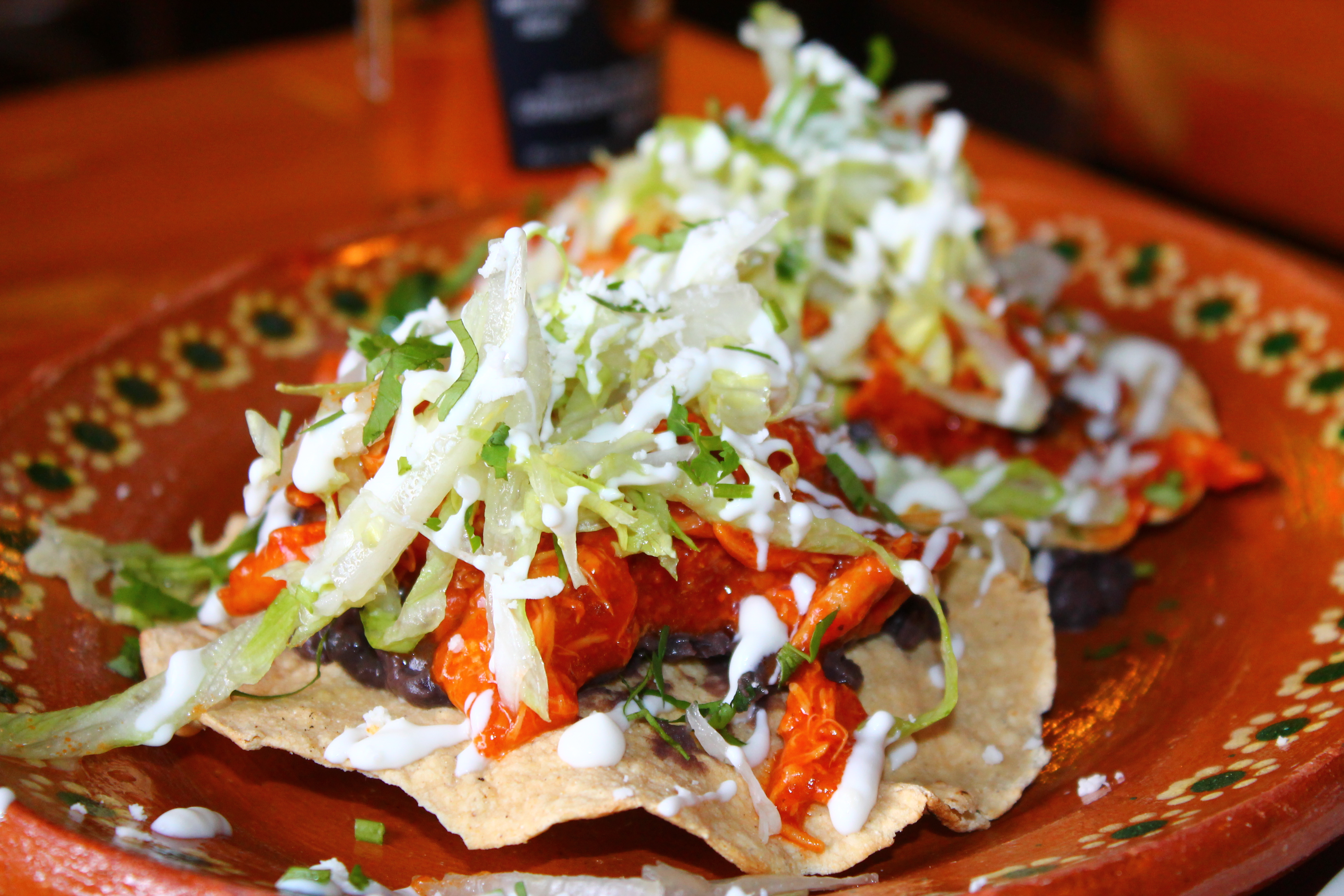 I had made a reservation for 6 and when we got there on a Friday night, the restaurant was packed! So much so that we were squeezed in a corner and lucky for us, and them, the 6th person cancelled at the last-minute because there was no room to fit a 6th body in the cramped corner we were in. Immediately after sitting down we were served fried tortillas and two salsas – one red, one green and neither was spicy. Soon after our waitress came by to take our order. Some of my friends decided to share appetizers, but I went straight to the main. Our order was: